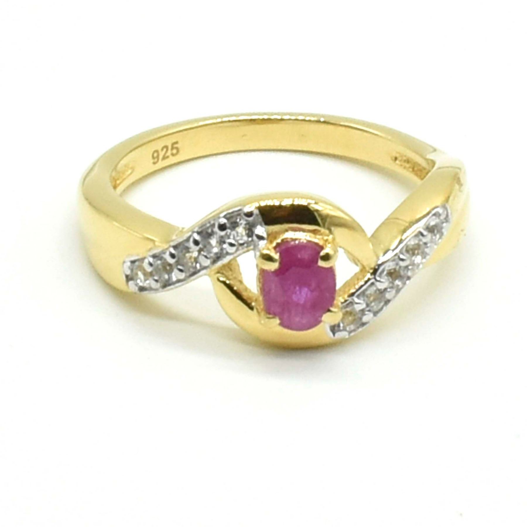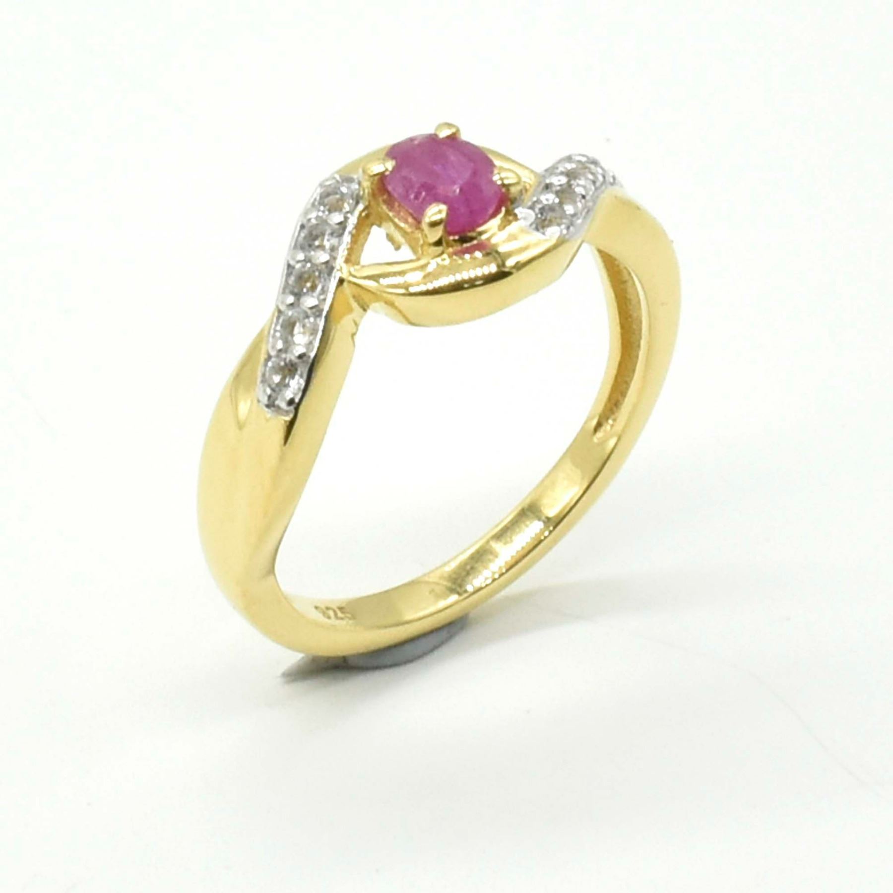 GOLD PLATED SILVER RUBY WHITE TOPAZ(0.45CT) RING SIZE 7