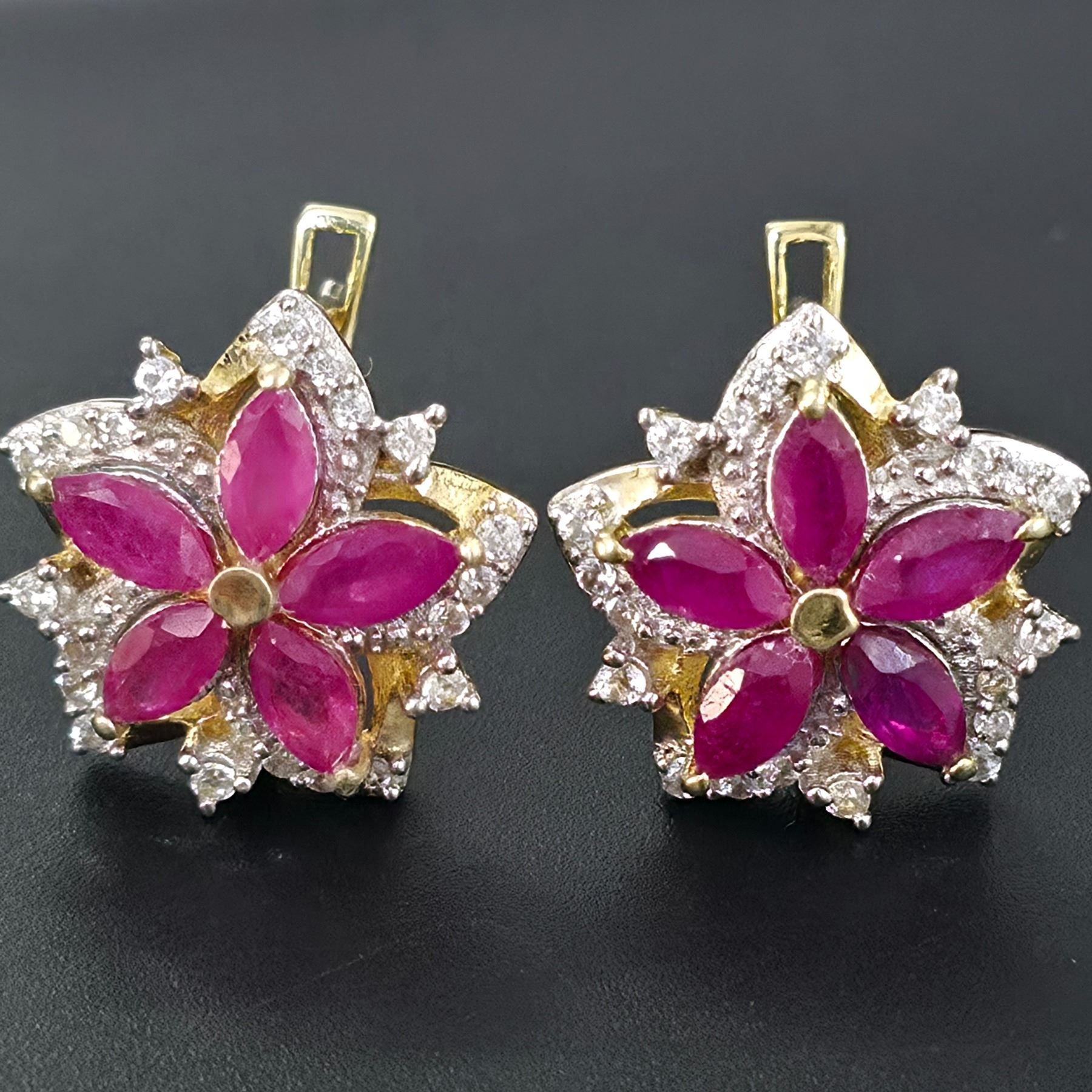 GOLD PLATED SILVER RUBY WHITE TOPAZ(3.6CT) GOLD RHODIUM PLATED EARRINGS (~WEIGHT 6.95G)