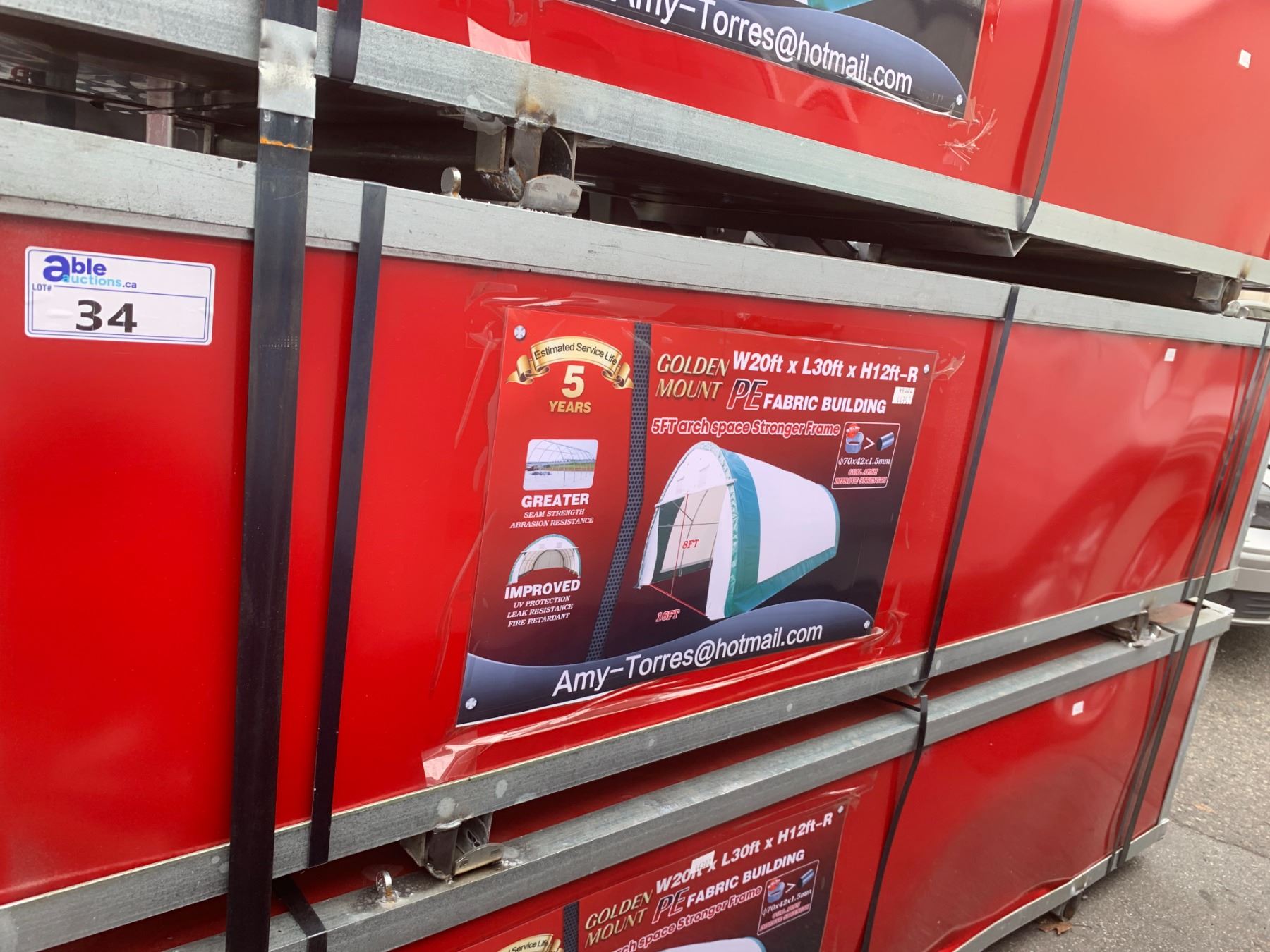 GOLDEN MOUNT 20' X 30' X 12' HIGH ROUND ROOF PE FABRIC BUILDING WITH 16' X 8' ROLL DOOR GROSS WEIGHT 460KG
