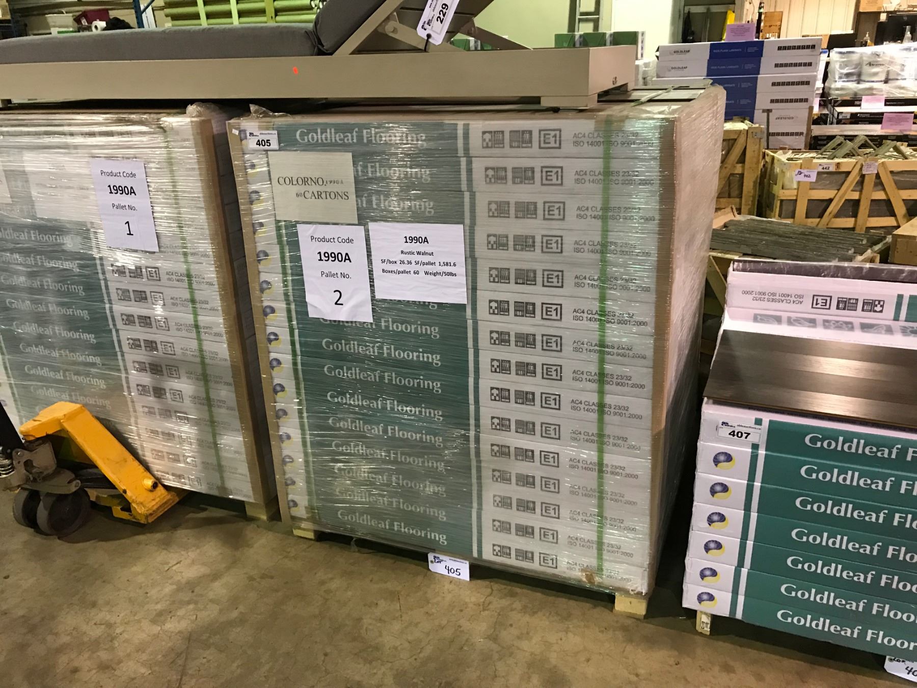 GOLDLEAF 10.8MM 1990A RUSTIC WALNUT GLUELESS LAMINATE FLOORING 26.36 SQ FT PER BOX 60 BOXES 1,581.6 SQ FT TOTAL *MUST TAKE ALL*