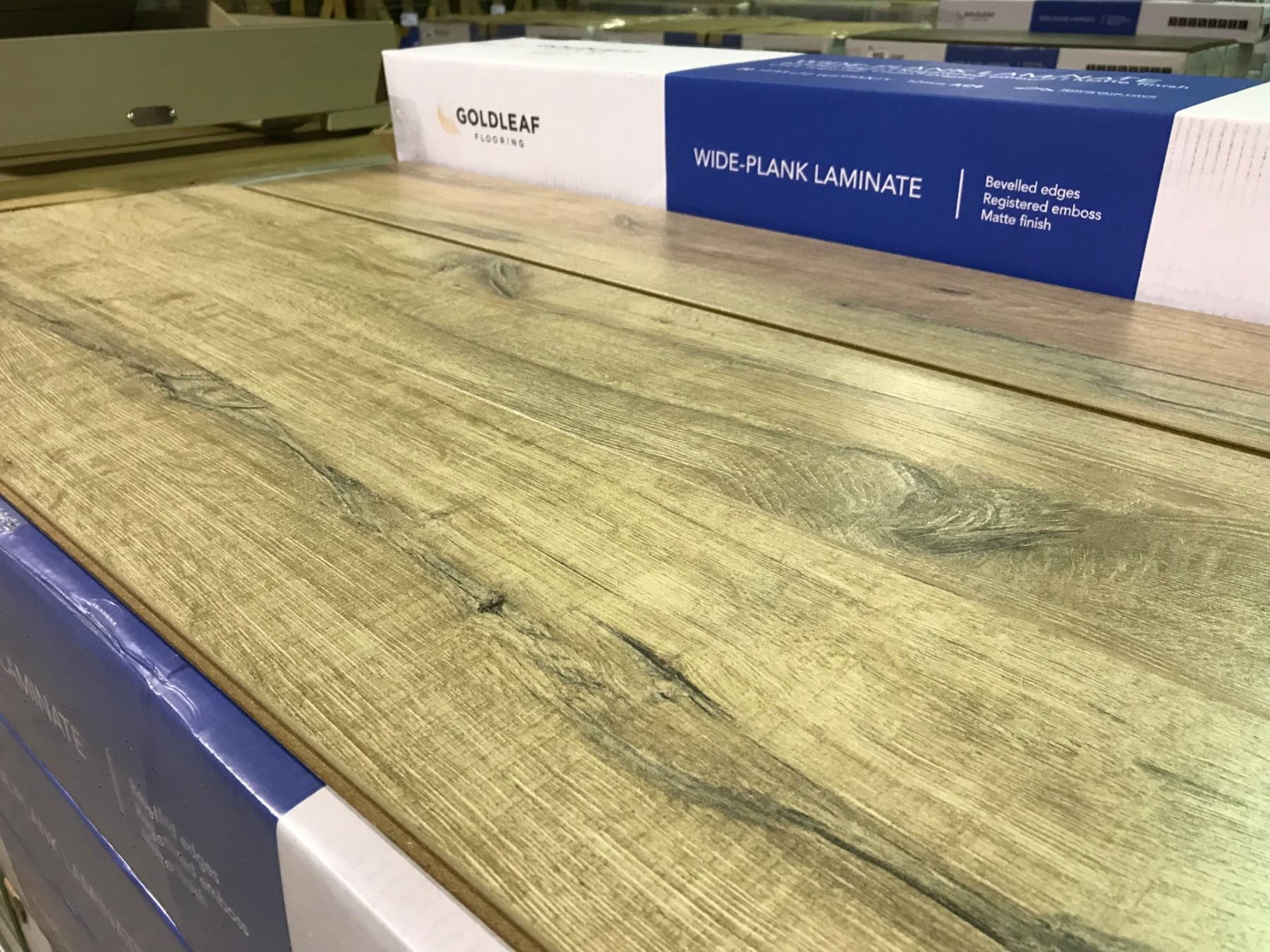 GOLDLEAF WIDE PLANK 8389-5 SAND TOWER OAK GLUELESS LAMINATE FLOORING 25.37 SQ FT PER BOX 50 BOXES 1,269 SQ FT TOTAL *MUST TAKE ALL*