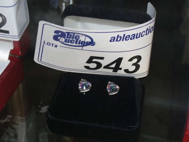 GORGEOUS MYSTIC TOPAZ HEART EARRINGS- SET IN SILVER - NEW