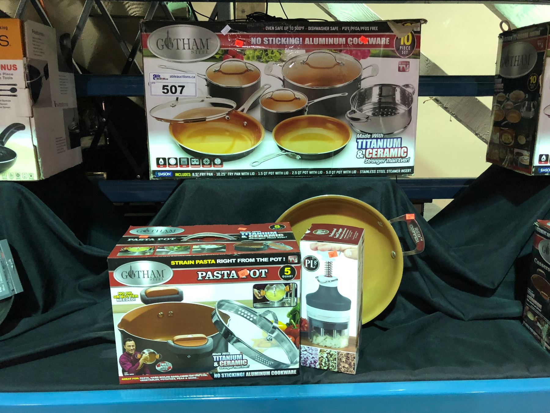 GOTHAM STEEL 10 PCS NONSTICK ALUMINUM COOKWARE SET, PASTA POT, PRO FOOD CHOPPER & RED COPPER PAN
