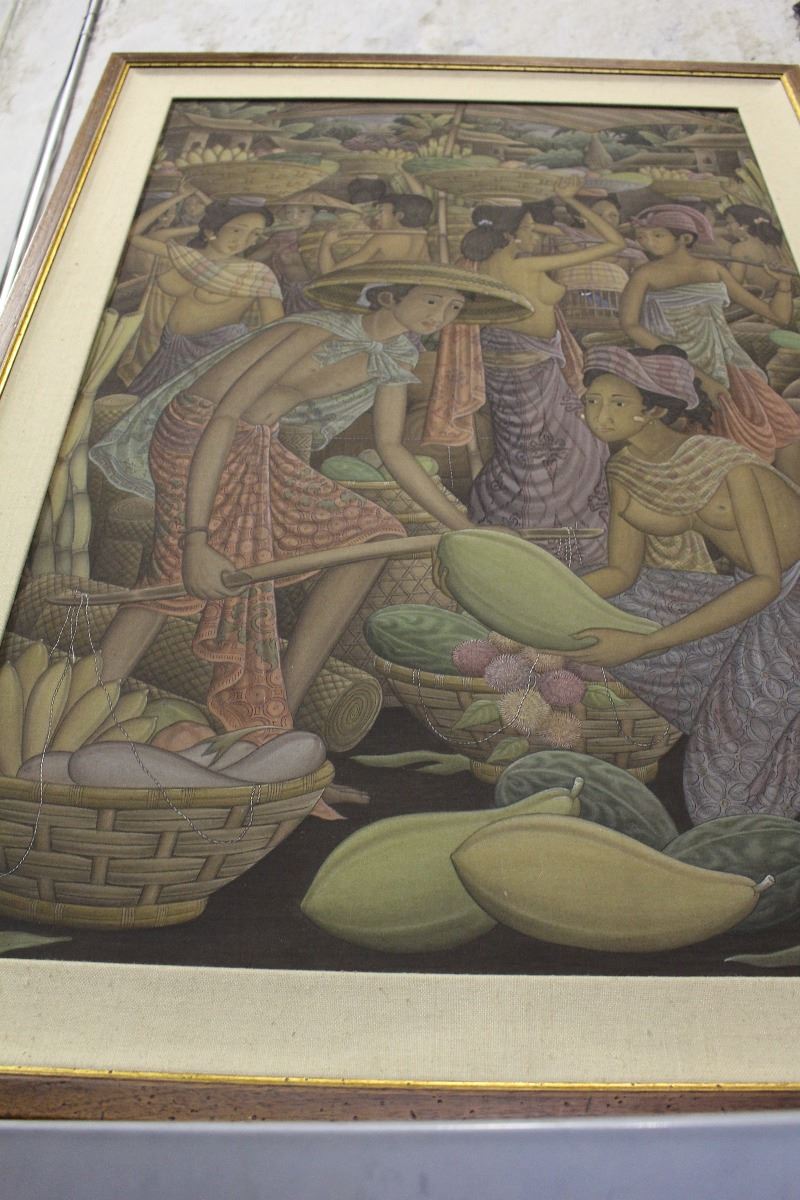 GOUACHE ON CANVAS "MARKET SCENE" SIGNED SULLENDRA, U BUD BALIE (INDONESIA)