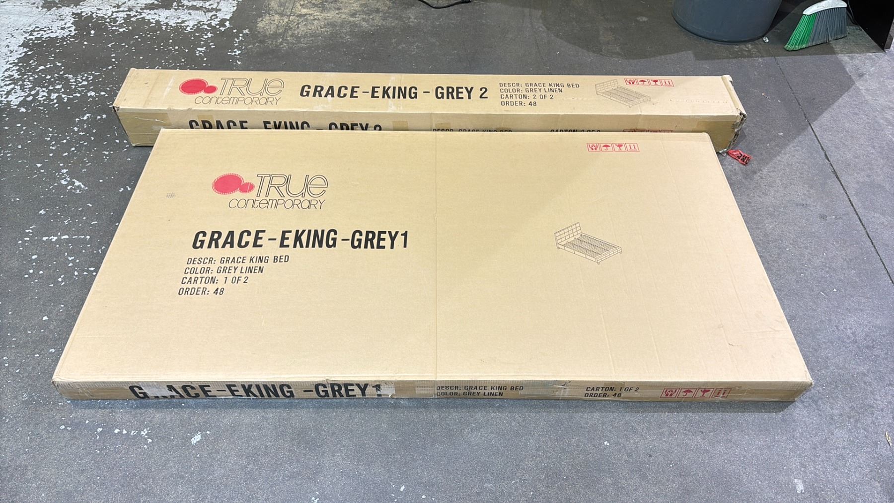 GRACE KING SIZE GREY LINEN BED FRAME *NEW IN BOX* (2 BOXES)