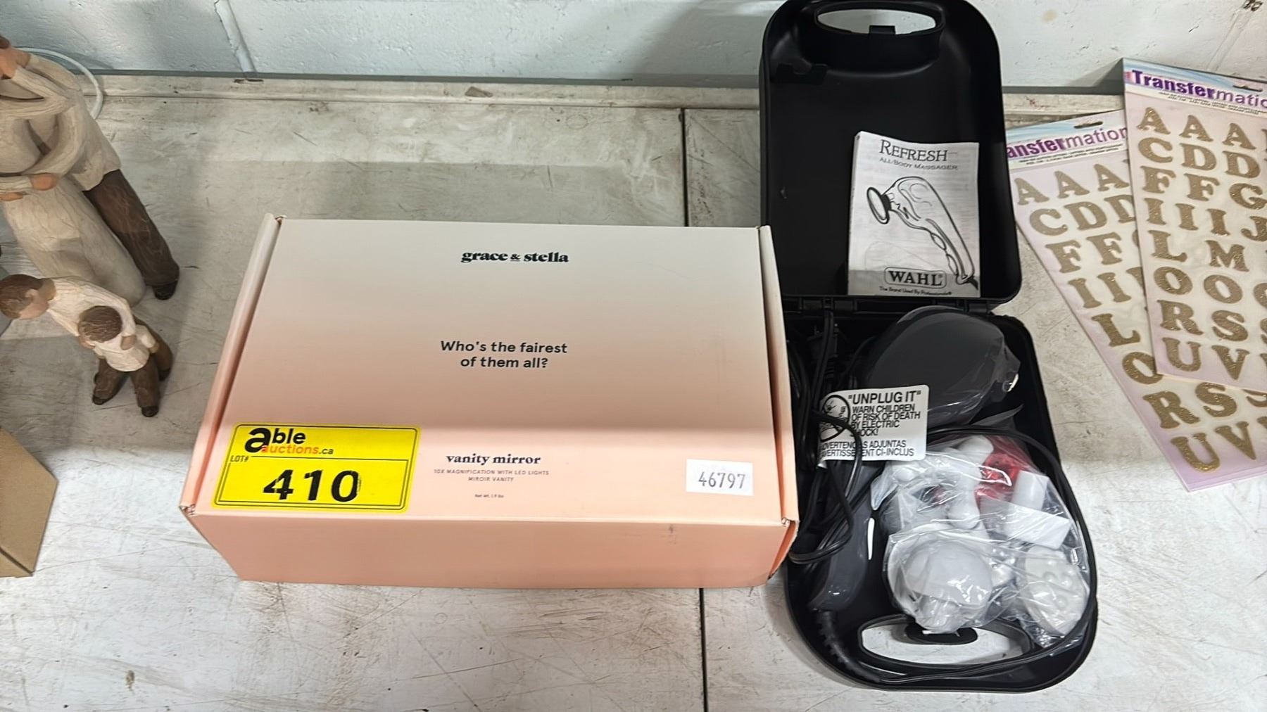 GRACE & STELLA VANITY MIRROR WITH LED LIGHTS & WAHL ALL BODY MASSAGER