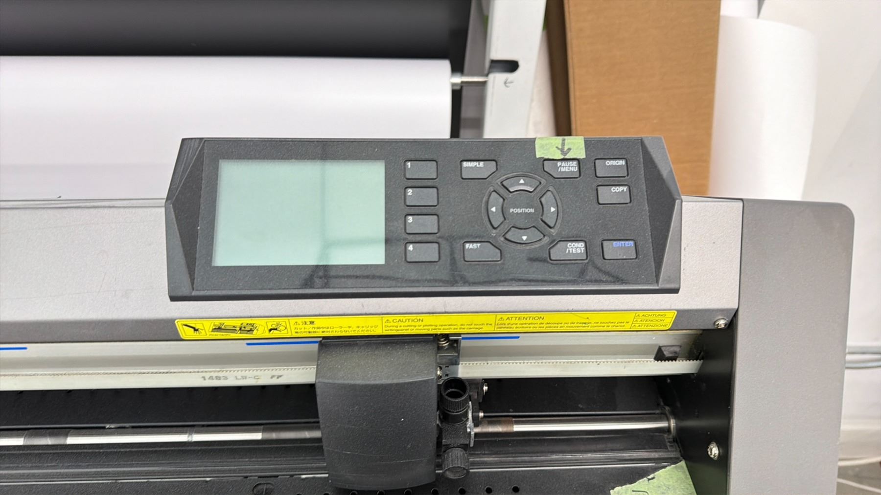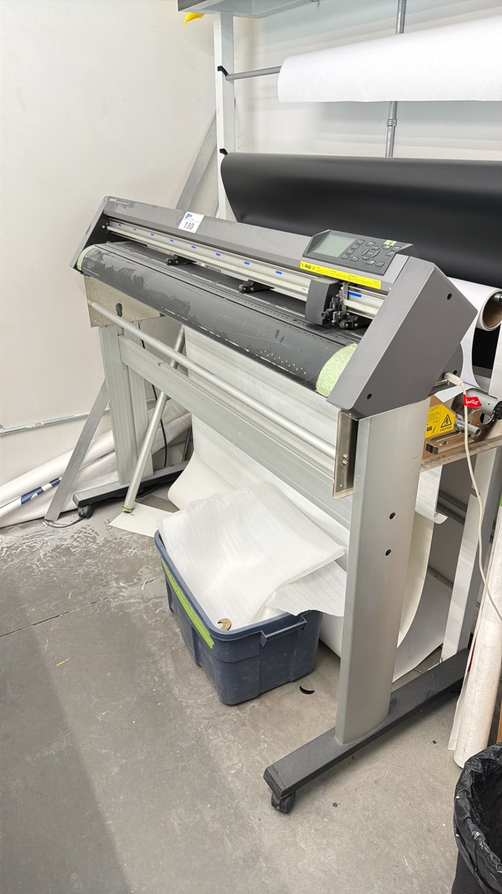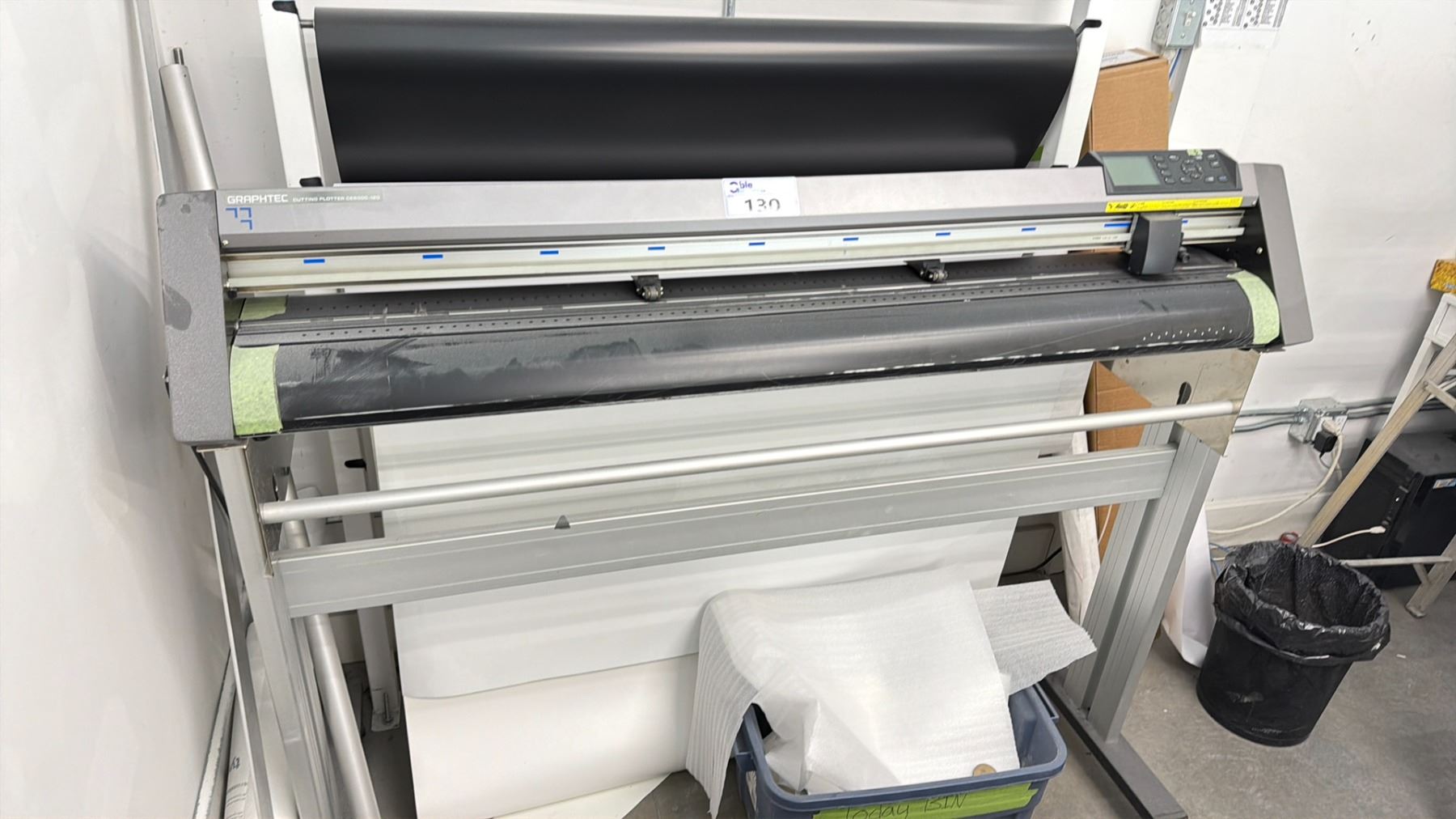 GRAPHTEC CE6000-120 LARGE SCALE CUTTING PLOTTER WITH COMPUTER SYSTEM AND WHITE 2 DRAWER COMMAND DESK