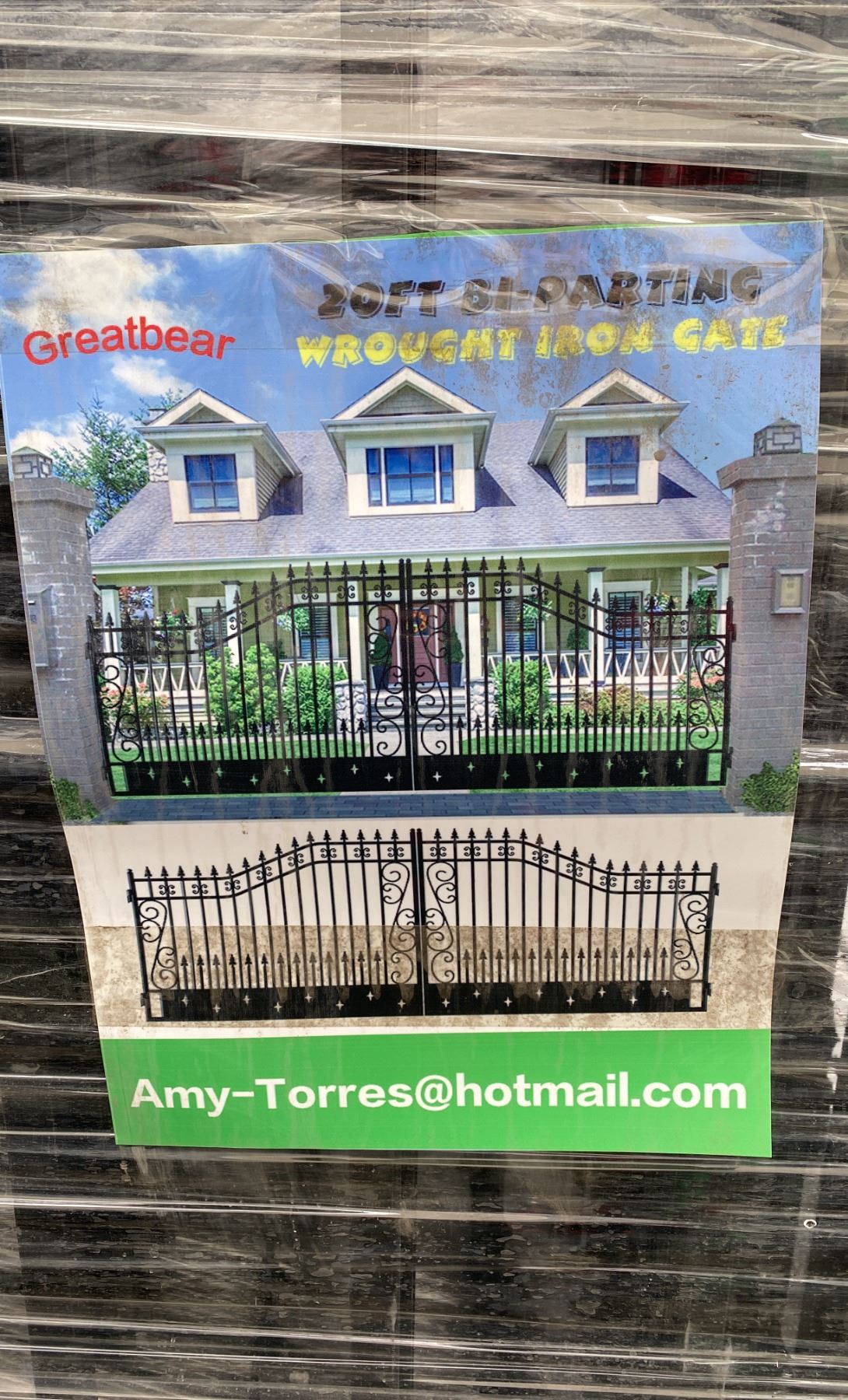 GREATBEAR BLACK 20' BI-PARTING METAL DRIVEWAY GATE WITH SCROLL ARTWORK IN CENTER 91"H TO CENTER ( LEFT & RIGHT SIDE ) *MUST HAVE PROPER TOOLS / SECOND PERSON FOR REMOVAL*