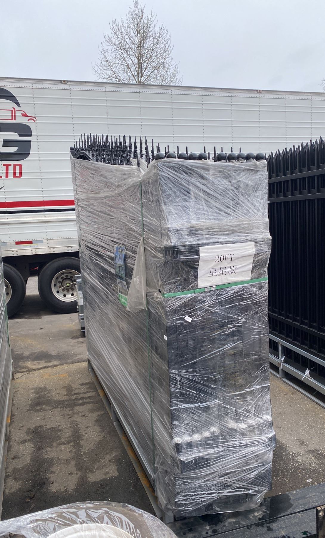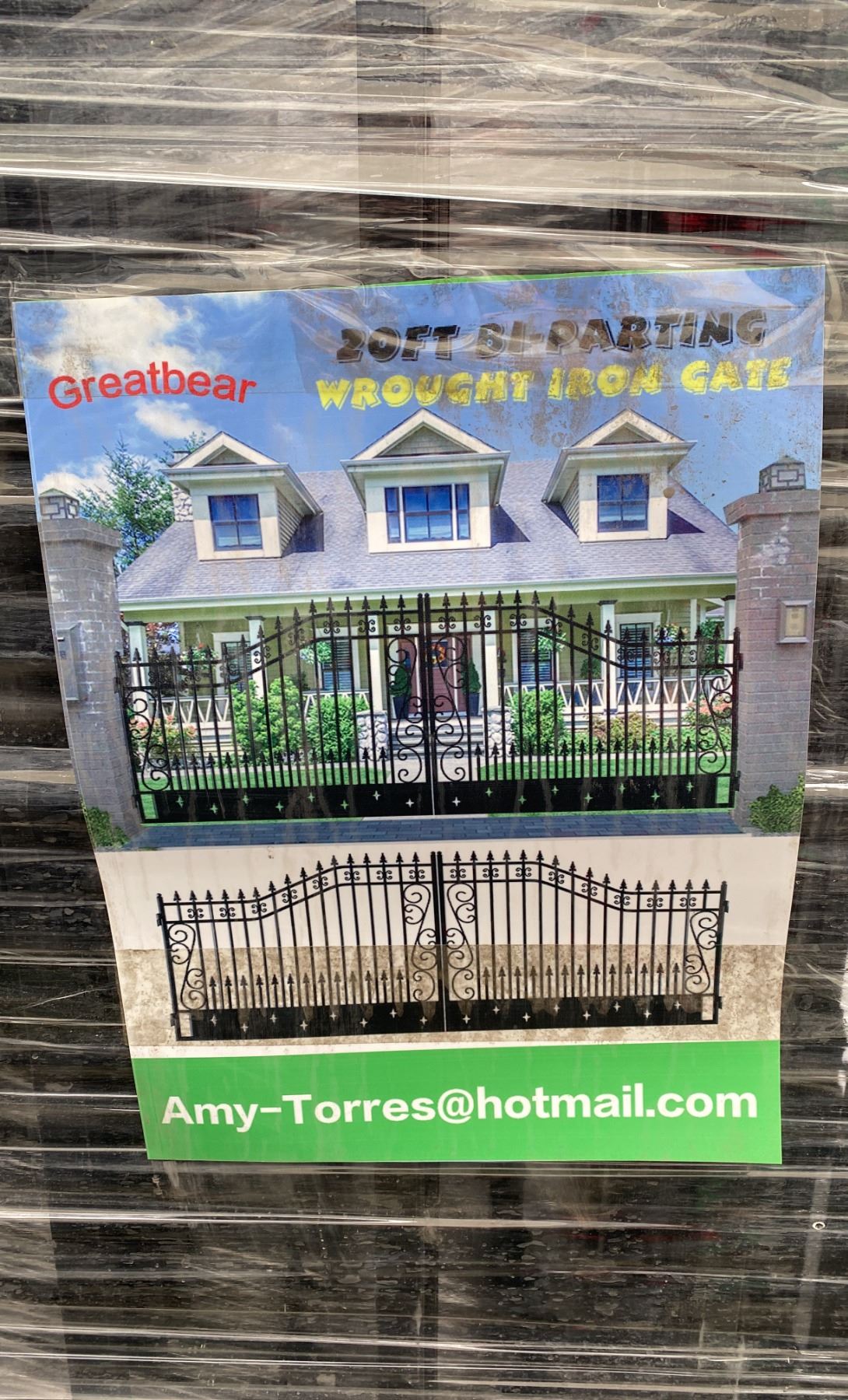 GREATBEAR BLACK 20' BI-PARTING METAL DRIVEWAY GATE WITH SCROLL ARTWORK IN CENTER 91"H TO CENTER ( LEFT & RIGHT SIDE ) *MUST HAVE PROPER TOOLS / SECOND PERSON FOR REMOVAL*