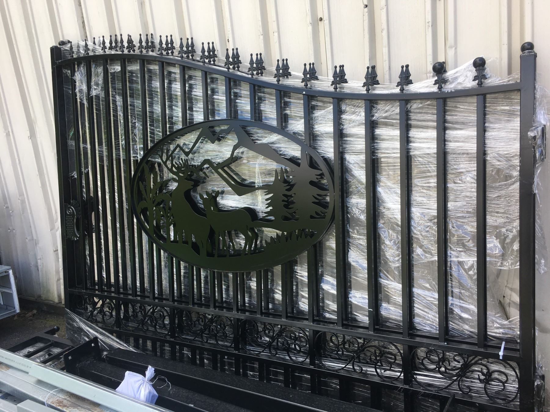 GREATBEAR BLACK 20' BI-PARTING WROUGHT IRON GATE WITH DEER ARTWORK IN CENTER 91"H TO CENTER ( LEFT & RIGHT SIDE)