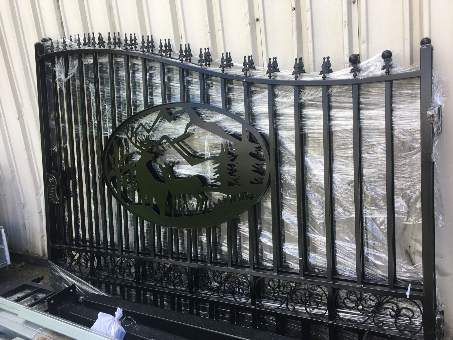 GREATBEAR BLACK 20' BI-PARTING WROUGHT IRON GATE WITH DEER ARTWORK IN CENTER 91"H TO CENTER ( LEFT & RIGHT SIDE)