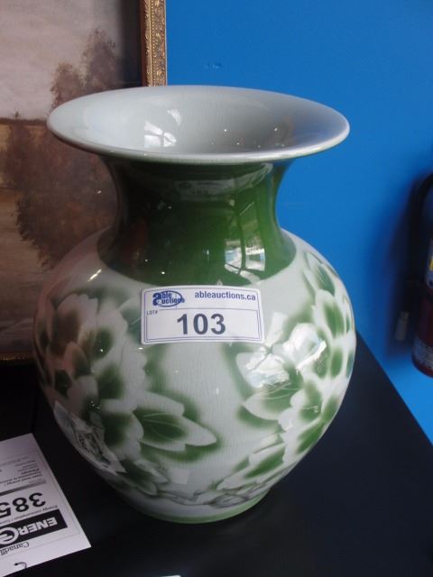 GREEN AND WHITE CHINESE PAINTED VASE