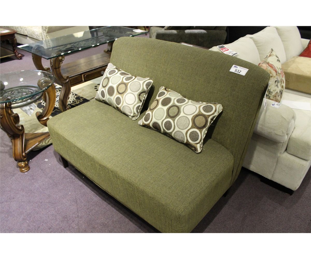 GREEN ARMLESS LOVESEAT WITH 2 PILLOWS