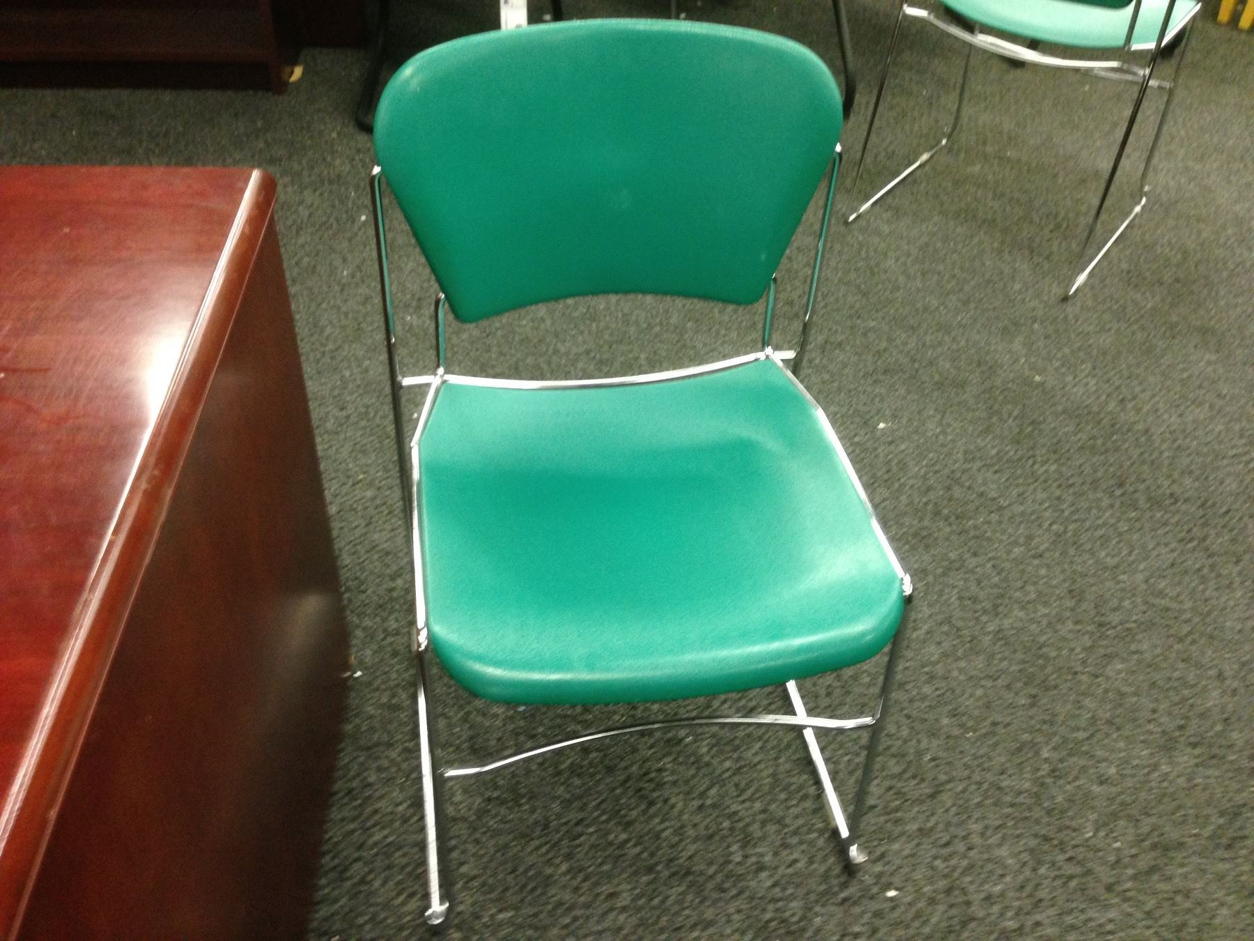 GREEN CHROME FRAME STACKING SIDE CHAIR