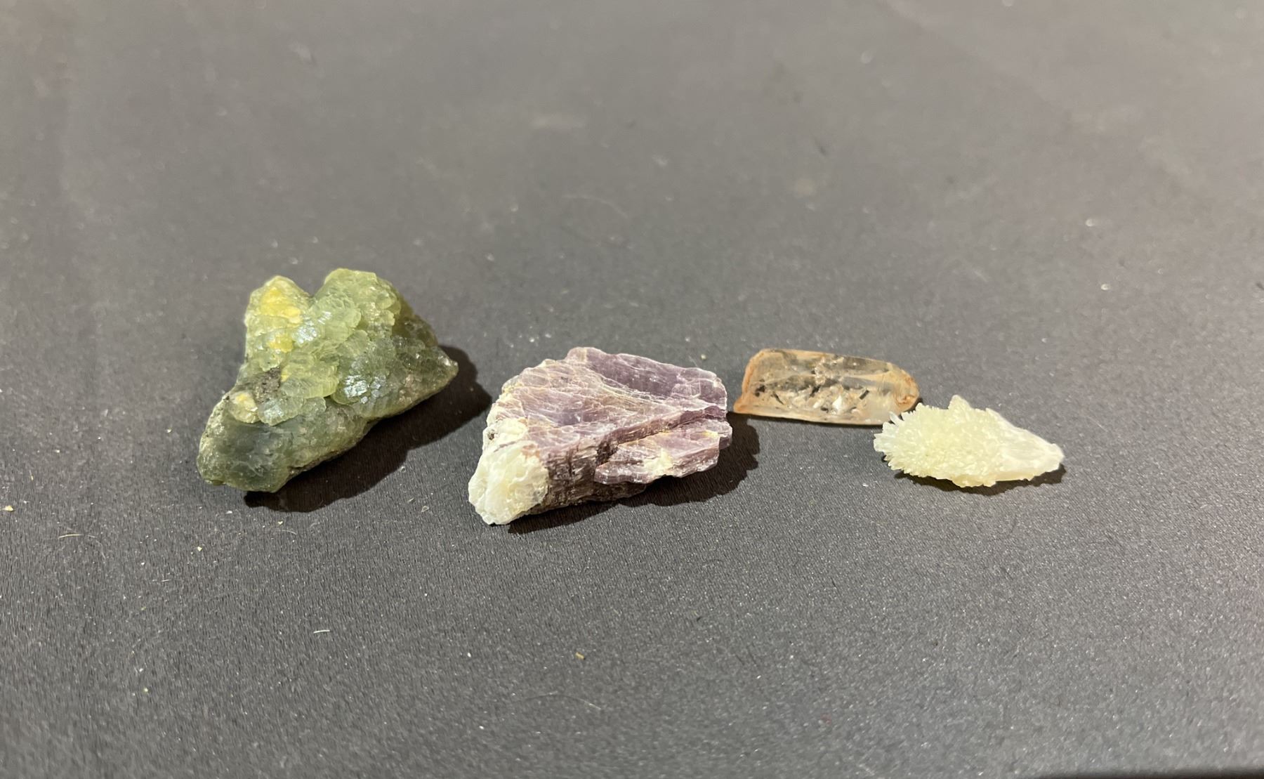 GREEN FLUORITE SPECIMEN RETAIL $180, LABRADORITE RETAIL $249, AND CALCITE/ QUARTZ