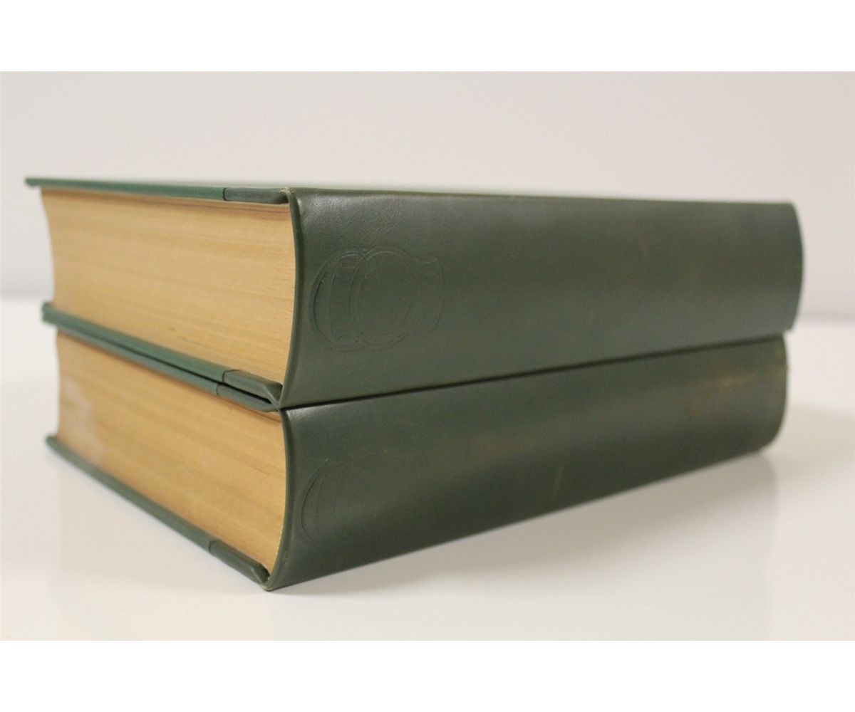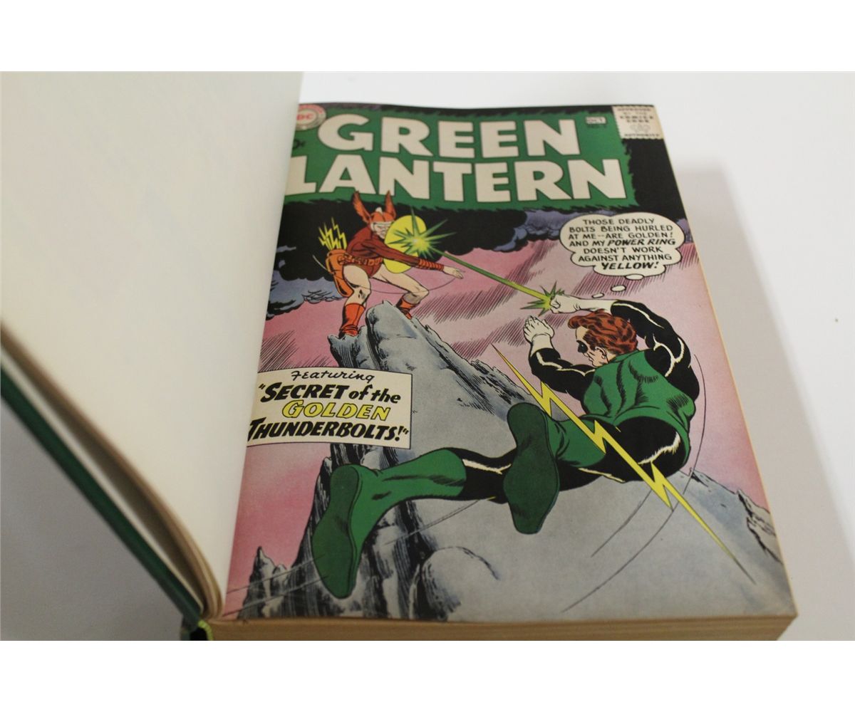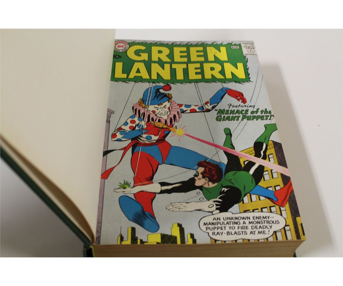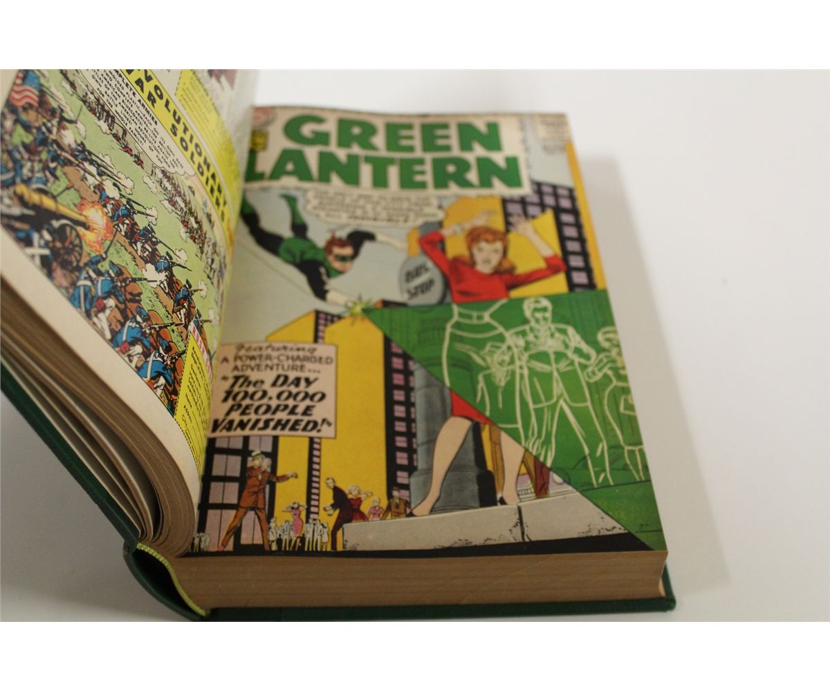 GREEN LANTERN #1-50 HIGH GRADE IN 2 BOUND VOLUMES (1960-67) THE 1ST 50 GREEN LANTERN ISSUES IN 2 ATTRACTIVE DARK GREEN HARD COVER BOOKS THAT ARE IMPRINTED ON THE SPINE WITH THE GREEN LANTERN RING! THE BOOKS ARE IN EXCELLENT CONDITION, TIGHTLY BOUND & HOLD 25 ISSUES EACH #1-25 & 26-50. IT IS RARE TO SEE SUCH AN IMPORTANT & SOUGHT AFTER TITLE AS THE 1ST 50 GREEN LANTERN COMICS AVAILABLE IN HIGH GRADE BOUND VOLUMES. IN FACT THE ONLY ITEM FOUND COMPARABLE ON AN INTERNET SEARCH WAS A GREEN LANTERN #1-20 BOUND VOLUME THAT SOLD THROUGH HERITAGE 8 YEARS AGO IN 2005 FOR $1,035. THE BOOKS HAVE NEARLY DOUBLED IN GUIDE VALUE SINCE THEN, THE #1 OF THAT VOLUME IS NOT AS NICE AS THIS #1(AS SEEN IN HERITAGE PIC) AND THESE VOLUMES HAVE MORE THAN 2X AS MANY ISSUES. THESE COPIES ARE IN EXCELLENT, GLOSSY & SHARP OVERALL CONDITION, SHOWING ONLY MINIMAL INSTANCES OF WEAR INCLUDING SLIGHT STAINING PRIMIARILY ON THE BACK END OF THE 2ND VOLUME AT TOP RIGHT & NONE ON THE 1ST TEN ISSUES. THIS RUN IS LOADED WITH KEY ISSUES, HAS A 2013 TOP END GUIDE VALUE OF $38,205 AND IS A MUST HAVE FOR THE GREEN LANTERN/BOUND VOLUME COLLECTOR