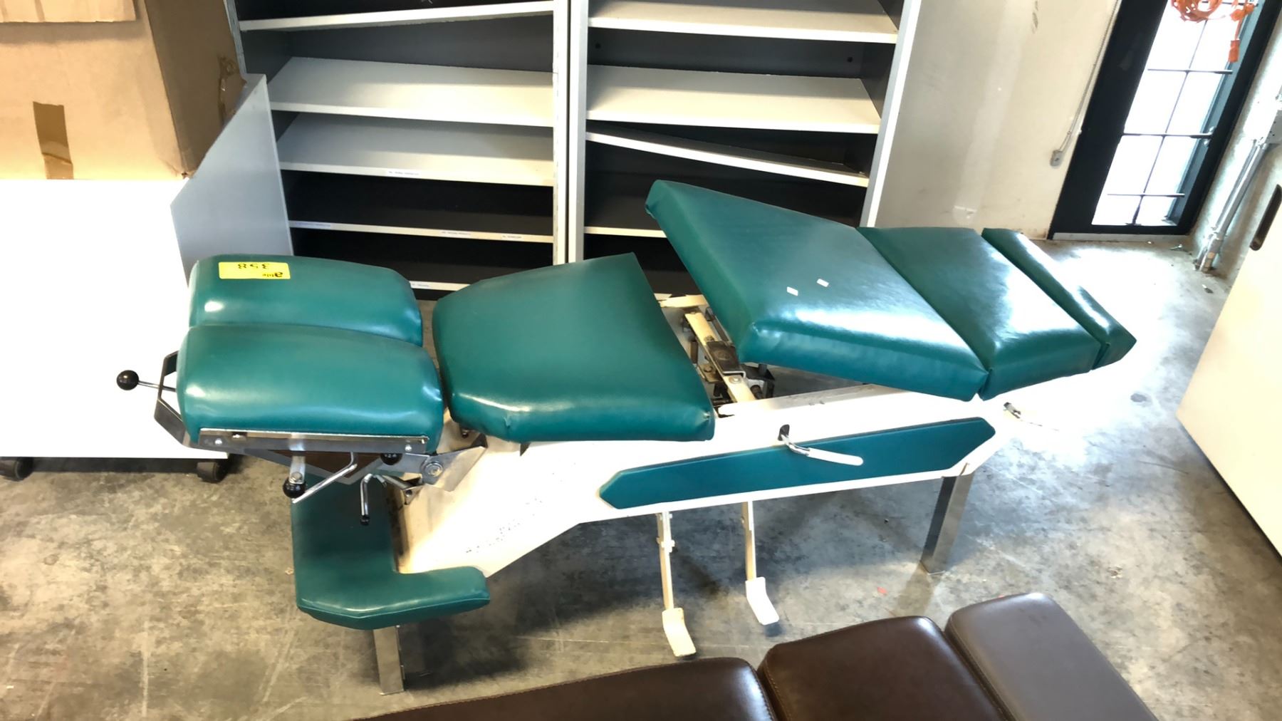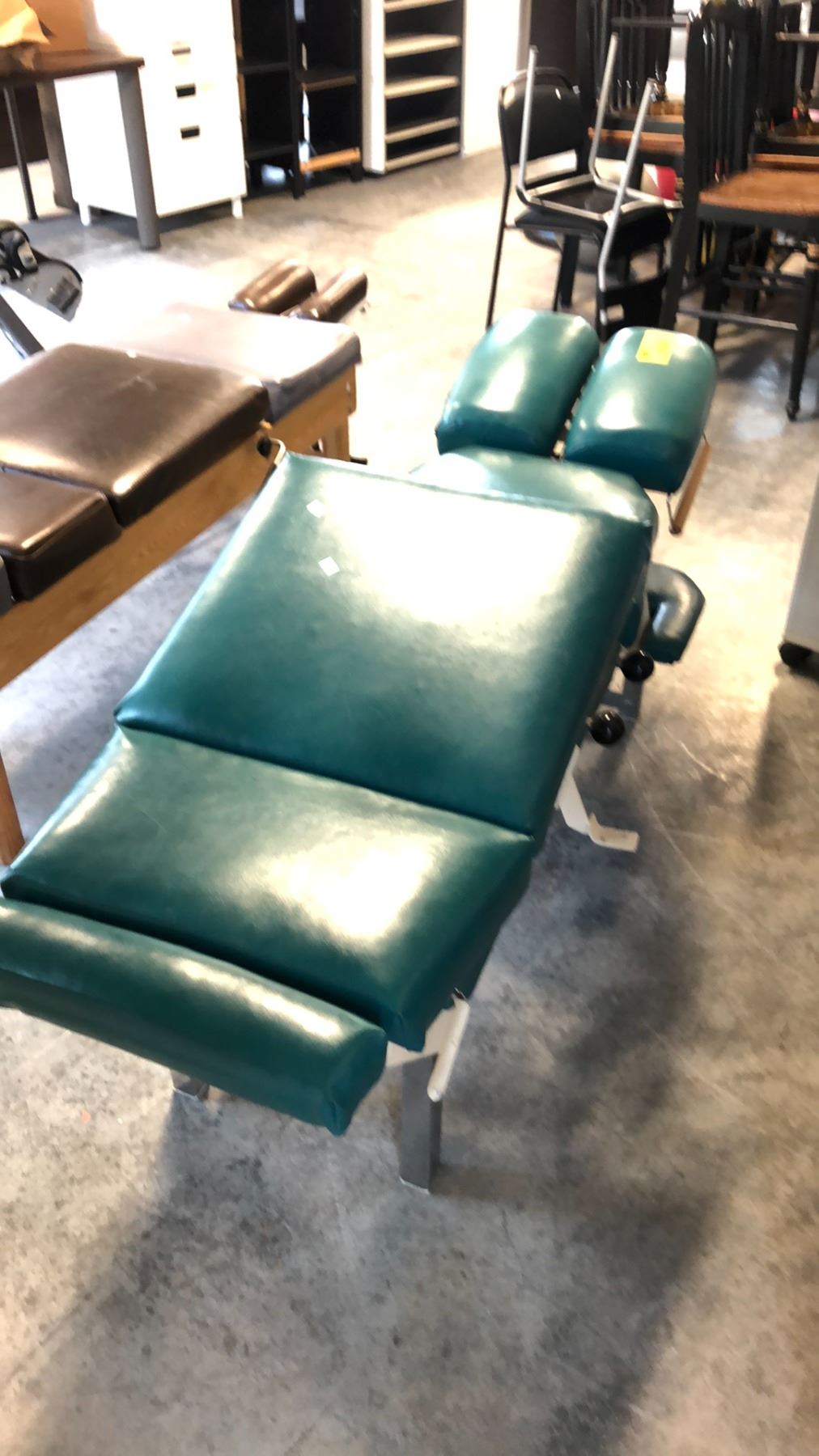 GREEN LEATHER ANGLE ADJUSTABLE METAL MASSAGE TABLE *LOCATED AT 101-11539 136 ST SURREY*