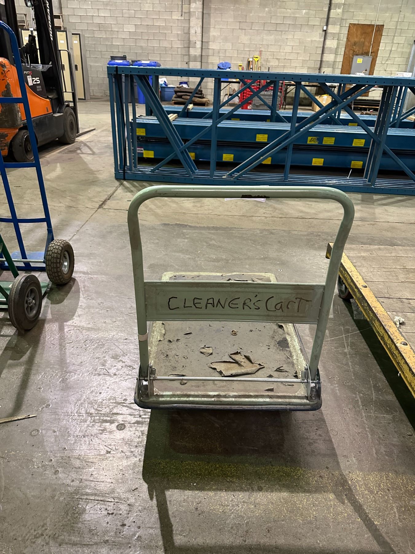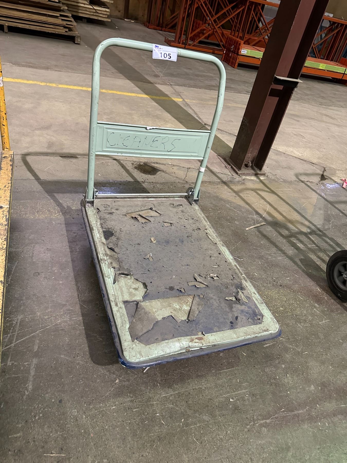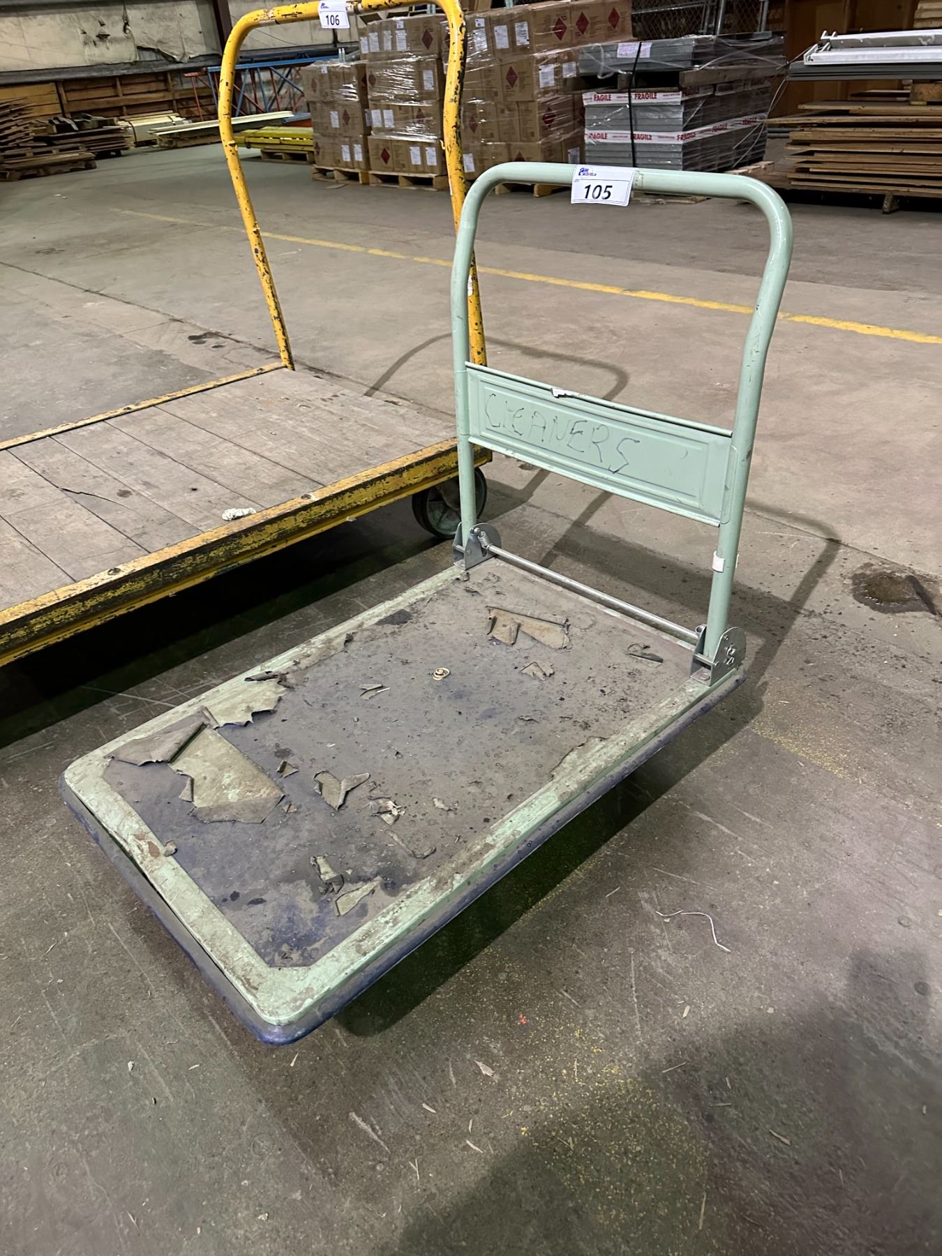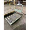 GREEN METAL 4 WHEELED FLAT DECK PRODUCT CART