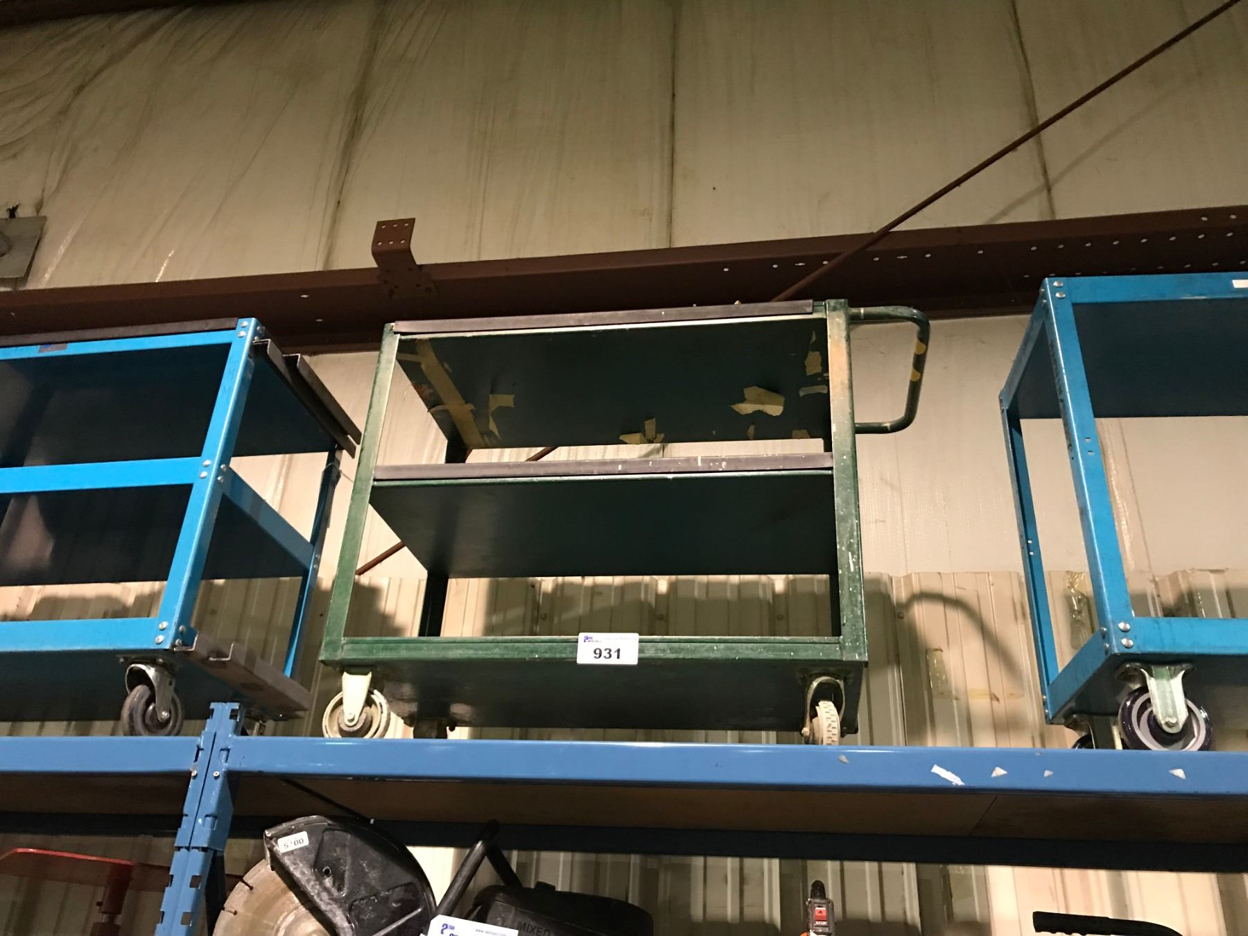 GREEN METAL THREE TIER MOBILE CART