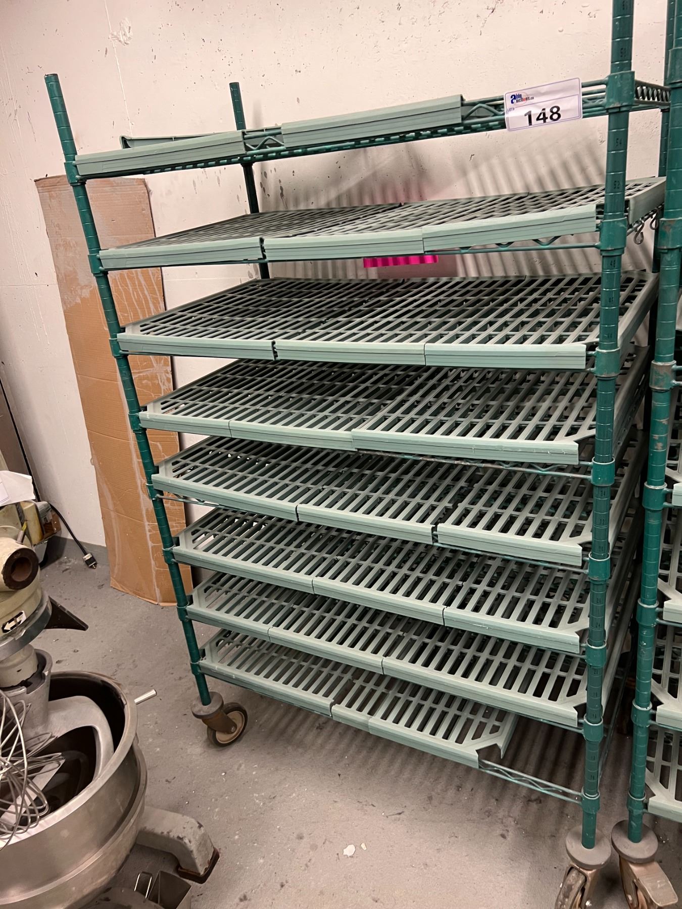 GREEN METRO RACKING ON WHEELS 42X24"X68" HIGH- 8 SHELVES