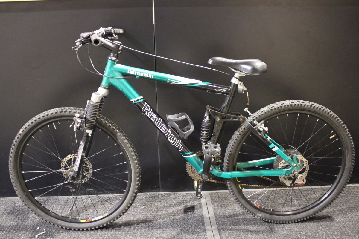 GREEN RALEIGH ADRENALIN 21 SPEED FULL SUSPENSION FULL DISC MOUNTAIN BIKE