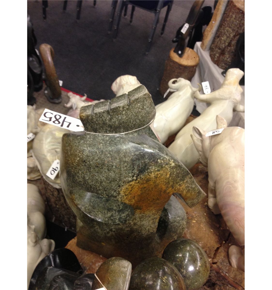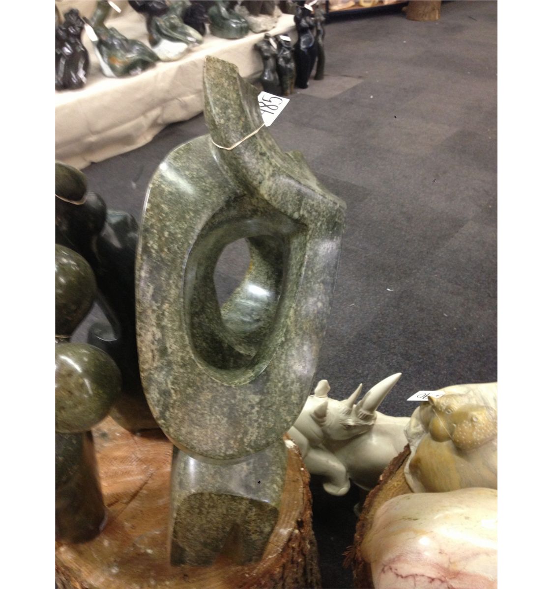 GREEN SERPENTINE "FRIENDSHIP" HAND CARVED 27" TALL