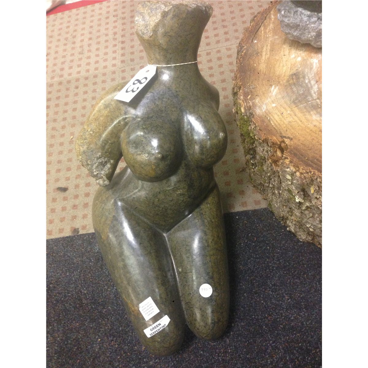 GREEN SERPENTINE, HAND CARVED FEMALE SCULPTURE FROM ZIMBABWE,  14" TALL