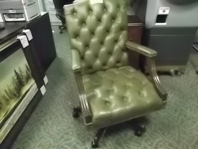 GREEN TRADITIONAL LEATHER TUFTED EXECUTIVE CHAIR