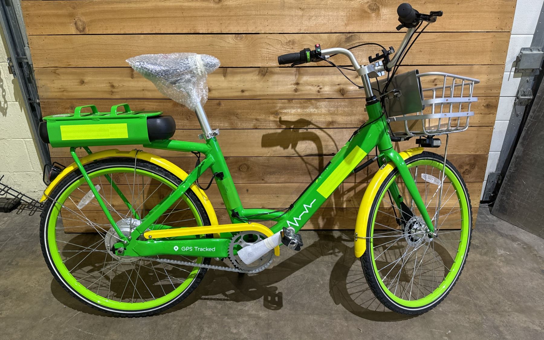 GREEN & YELLOW E-BIKE WITH BATTERY, KEY & CHARGER