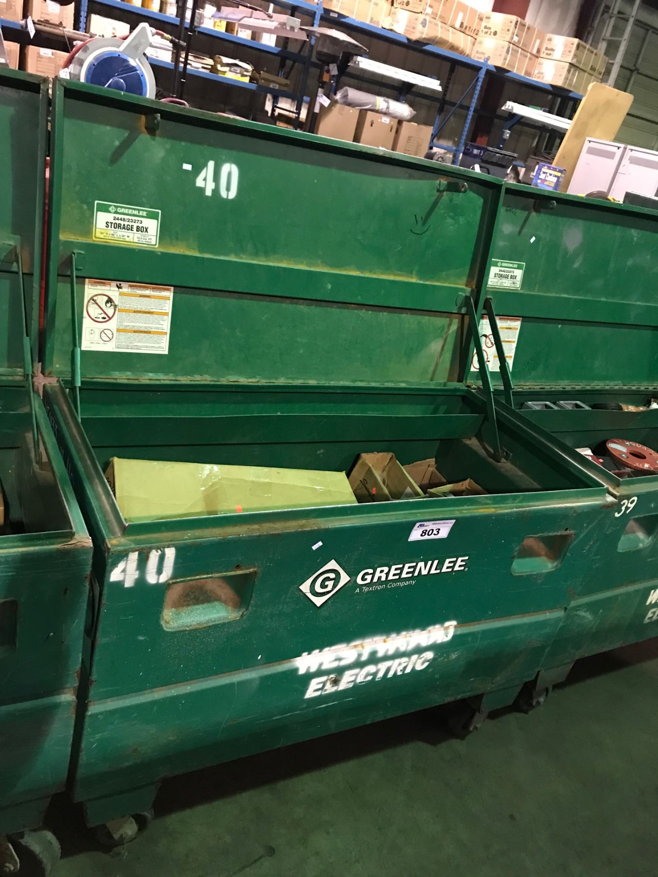 GREENLEE 2448/23273 24"X48"X24" 16.0 CU FT JOB SITE STORAGE BOX WITH CONTENTS