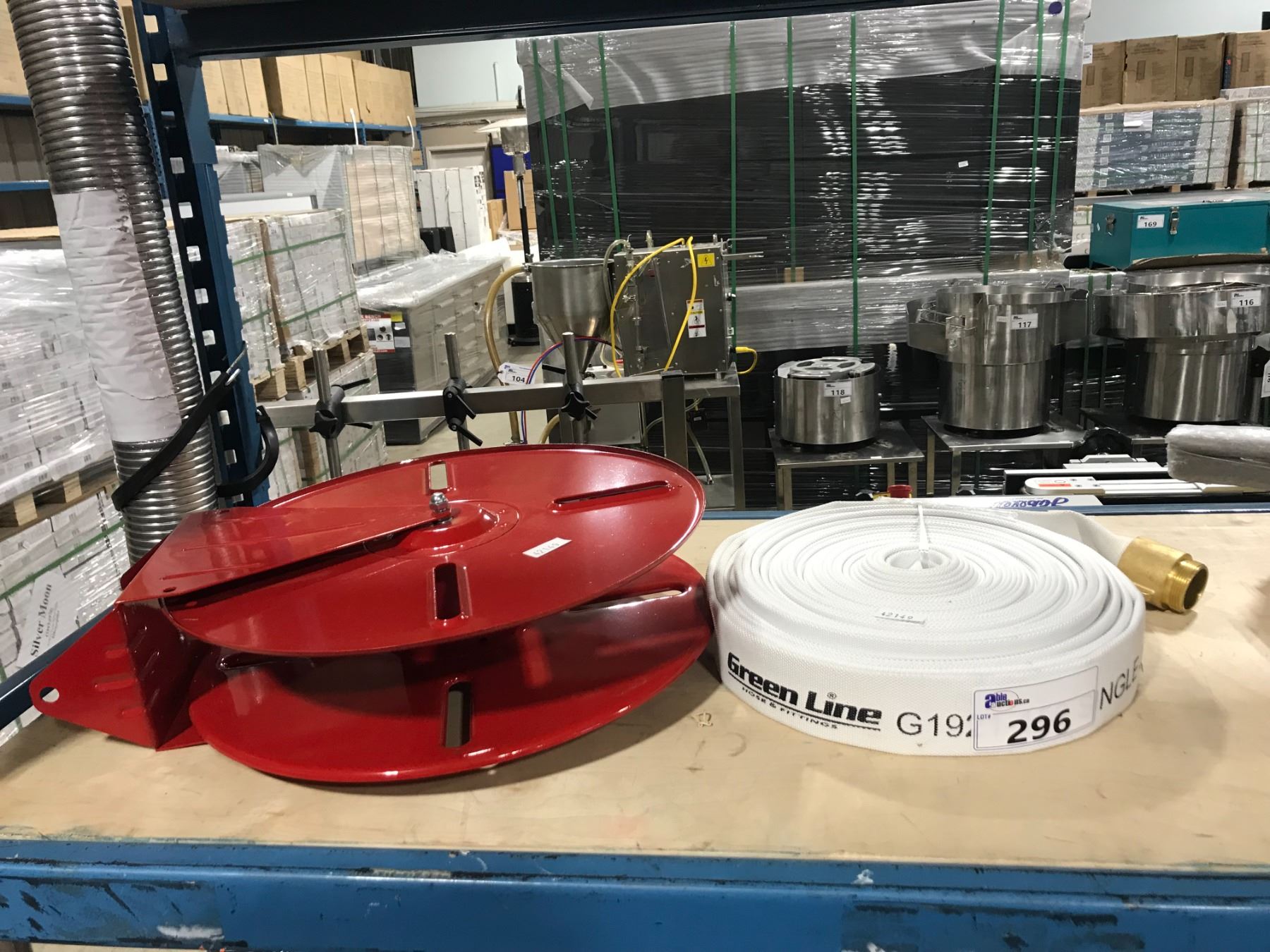 GREENLINE SINGLE JACKET COMMERCIAL FIRE HOSE AND RED INDUSTRIAL MOUNTED HOSE REEL