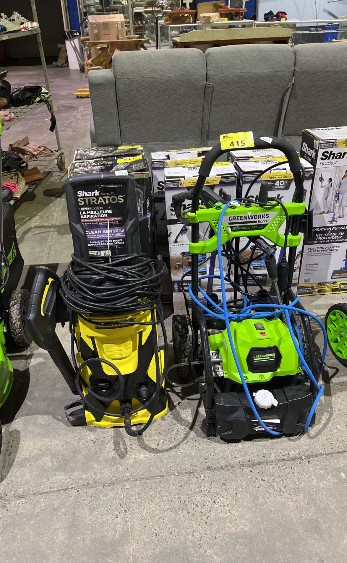GREENWORKS ELITE 2000PSI ELECTRIC PRESSURE WASHER, AND KARCHER PRESSURE WASHER *UNKNOWN WORKING CONDITION/ MAY BE MISSING PIECES*