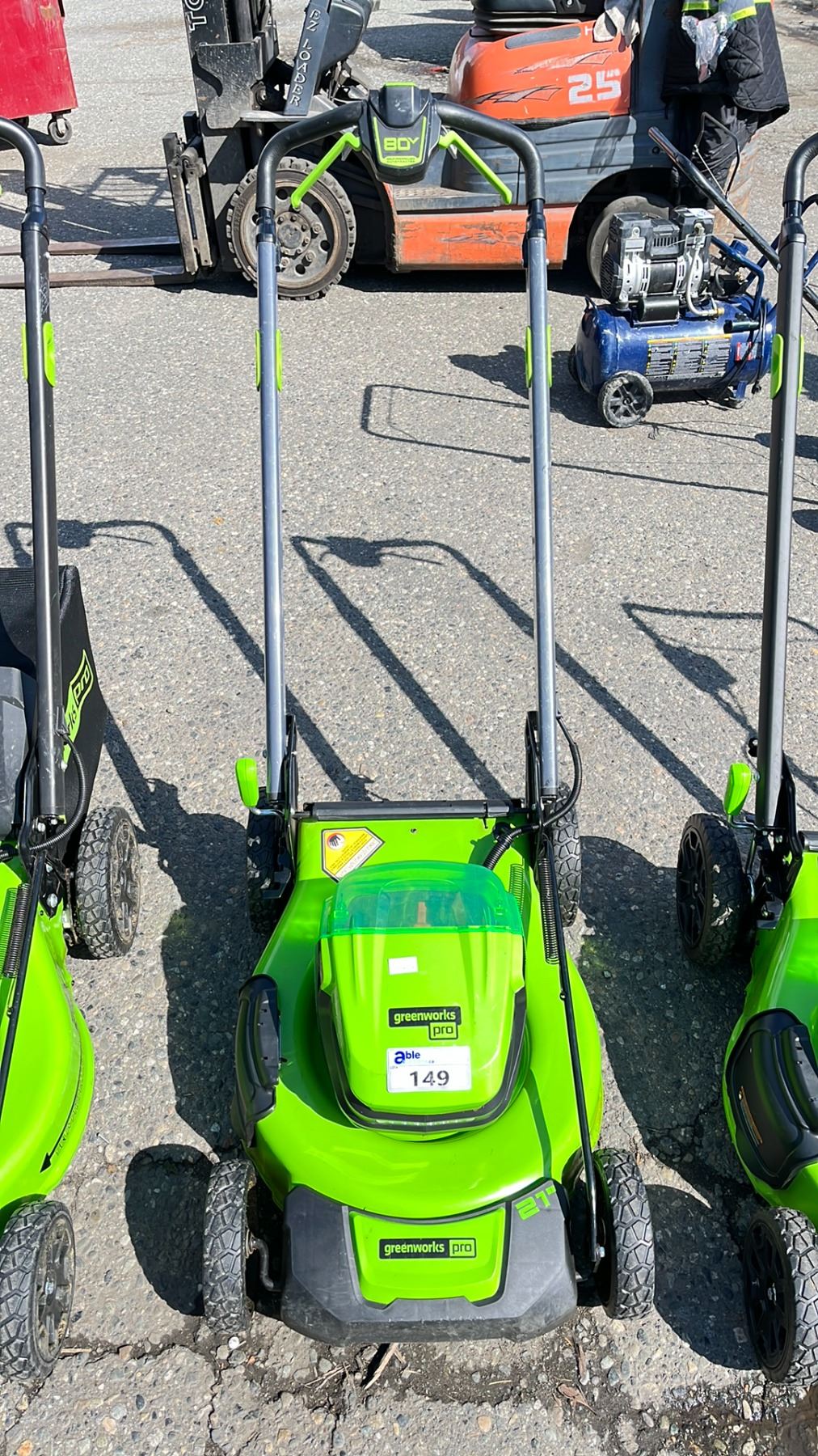GREENWORKS PRO CORDLESS MOWER (NO BATTERIES, NO CHARGER NO REAR BAG, UNKNOWN WORKING CONDITION)