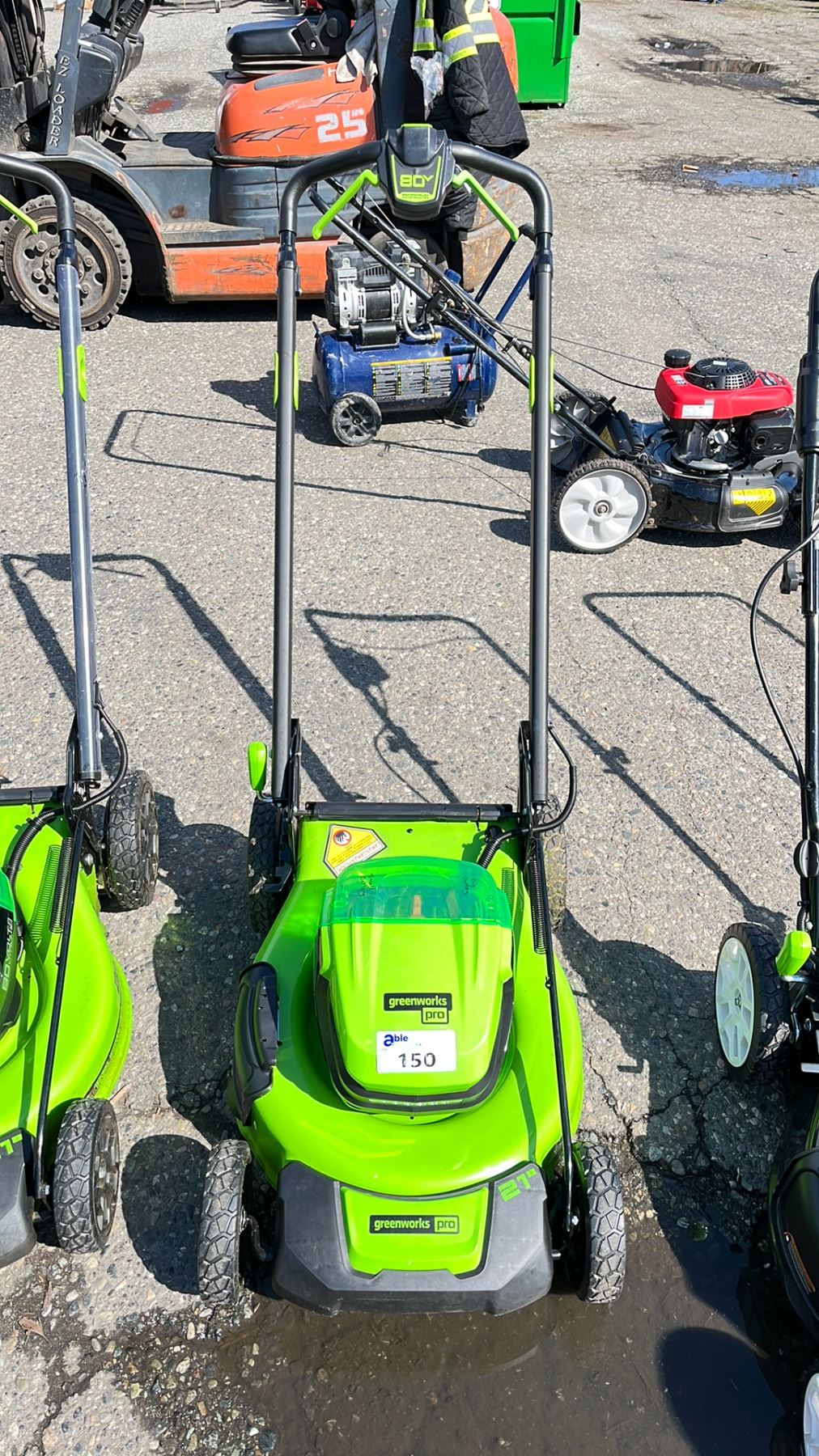 GREENWORKS PRO CORDLESS MOWER (NO BATTERIES, NO CHARGER NO REAR BAG, UNKNOWN WORKING CONDITION)