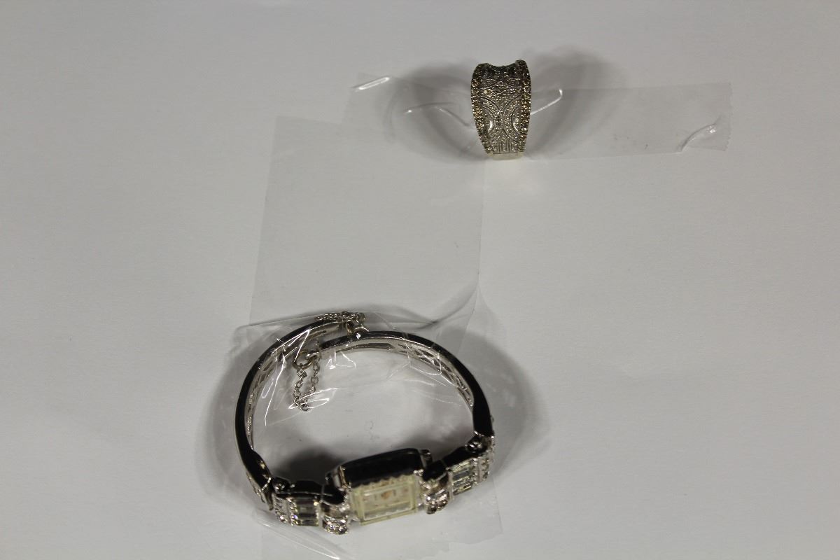 GRENAR LADIES BANGLE WRIST WATCH (NOT WORKING), AND A 10KT WHITE GOLD DIAMOND SET LADIES RING WITH 90 DIAMONDS WEIGHING APPROX 0.40CARAT AND MARKED 10K REPLACEMENT VALUE $2,150
