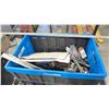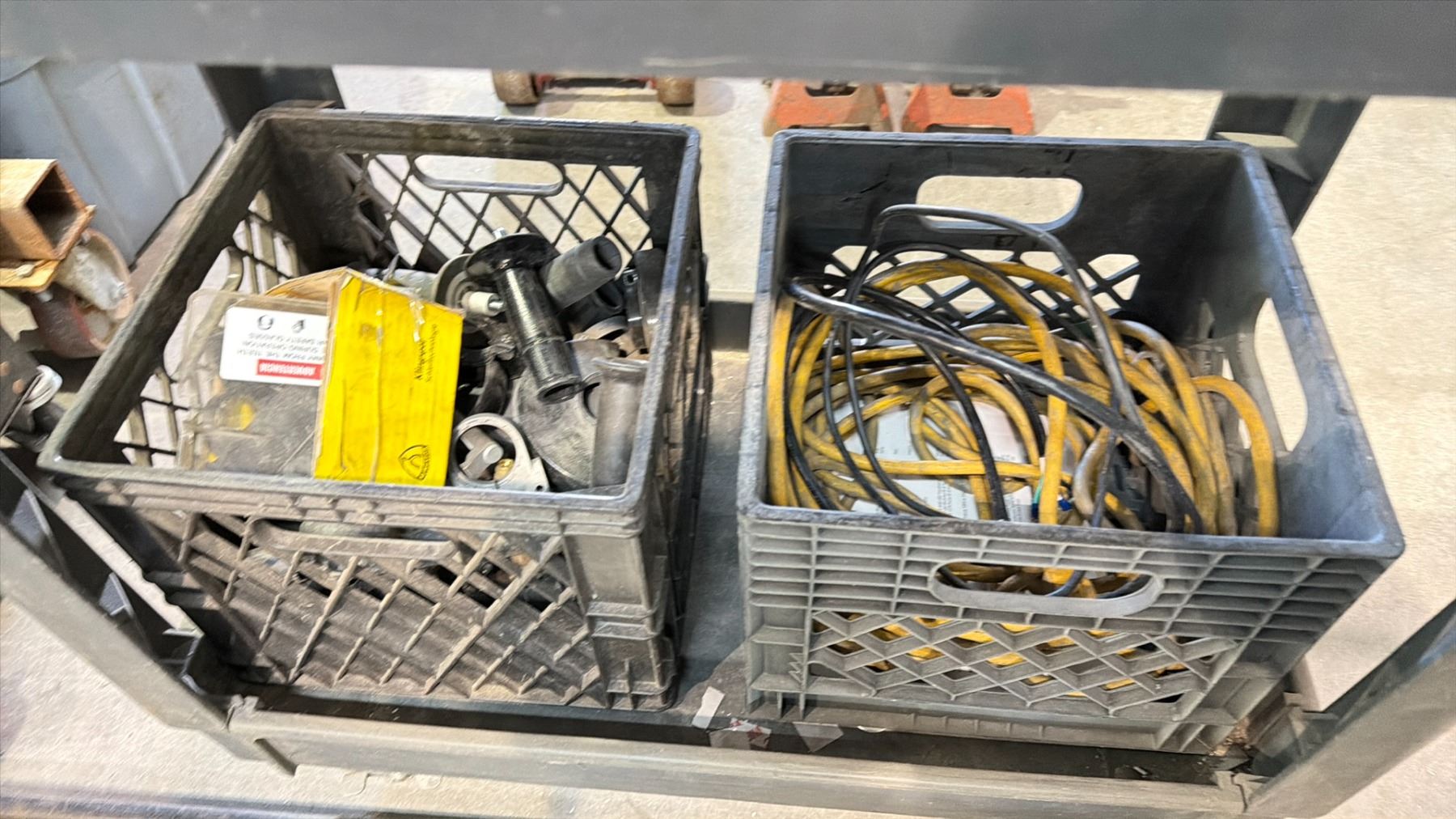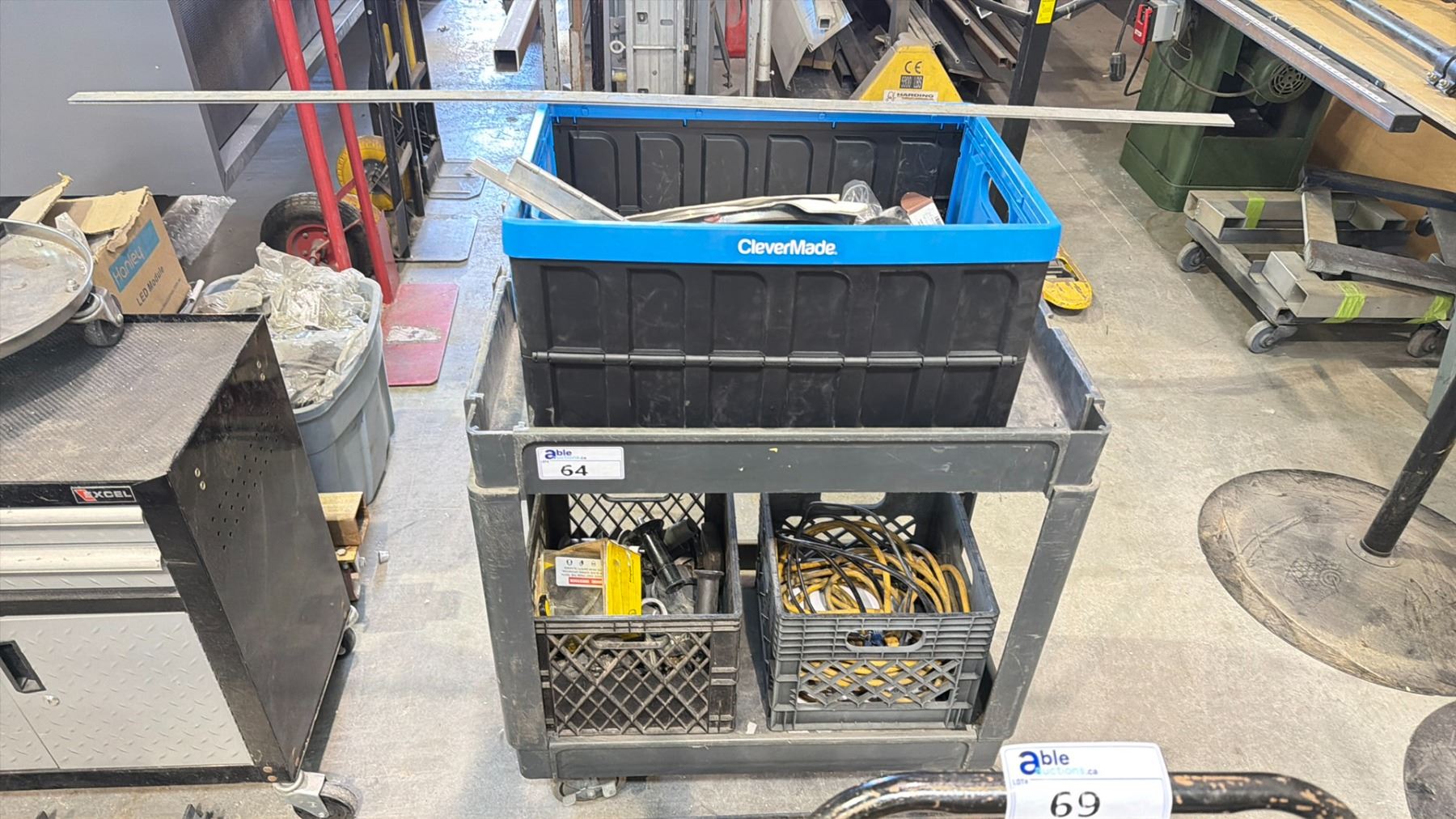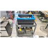 GREY 2 TIER CART WITH LARGE PIPE CLAMPS, ASSORTED CLAMPS AND HARDWARE