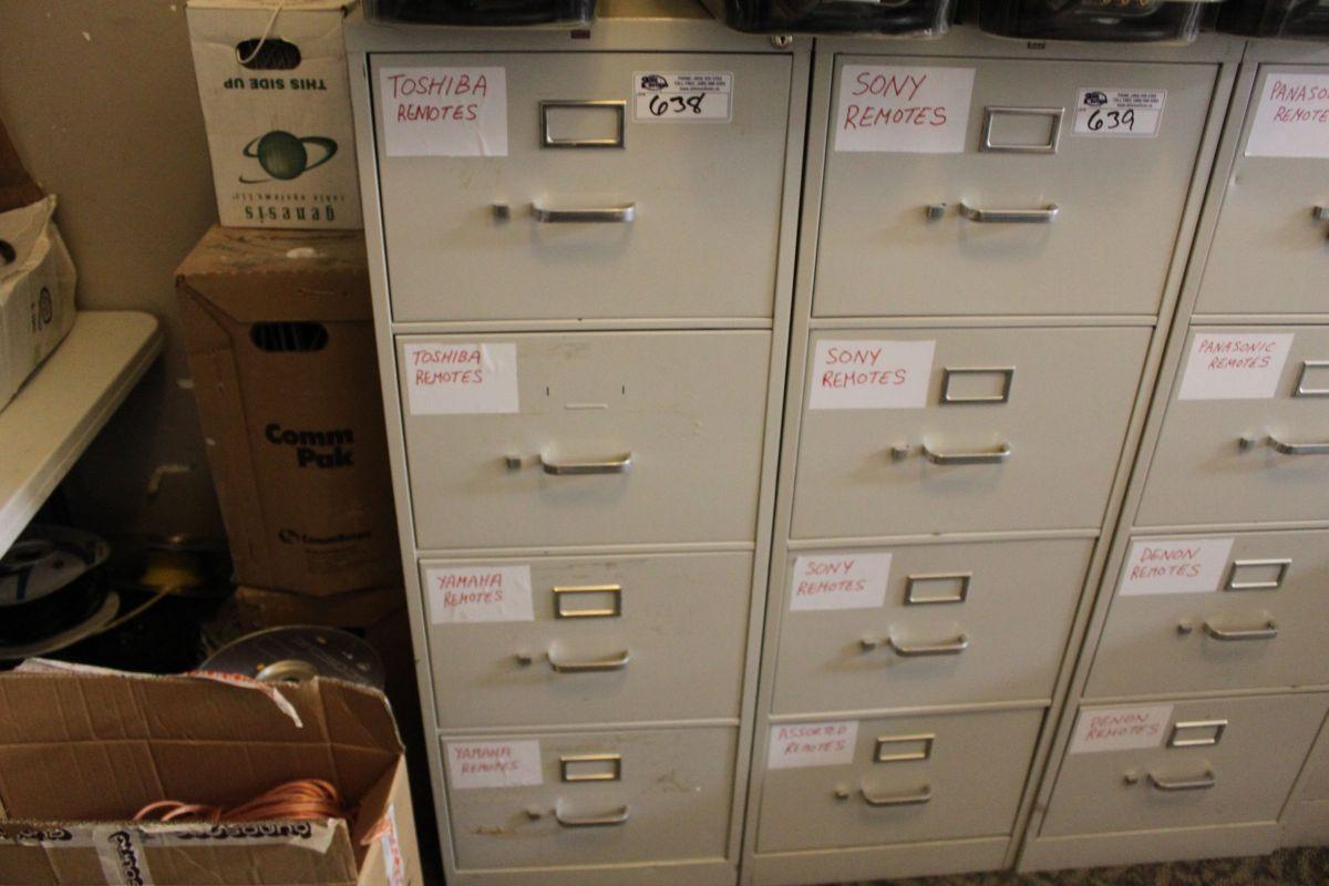 GREY 4 DRAWER FILE CABINET FULL OF REMOTE CONTROLS
