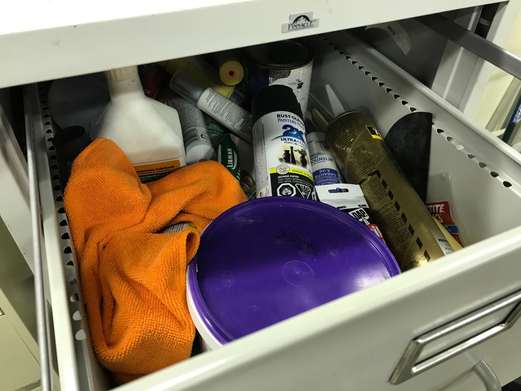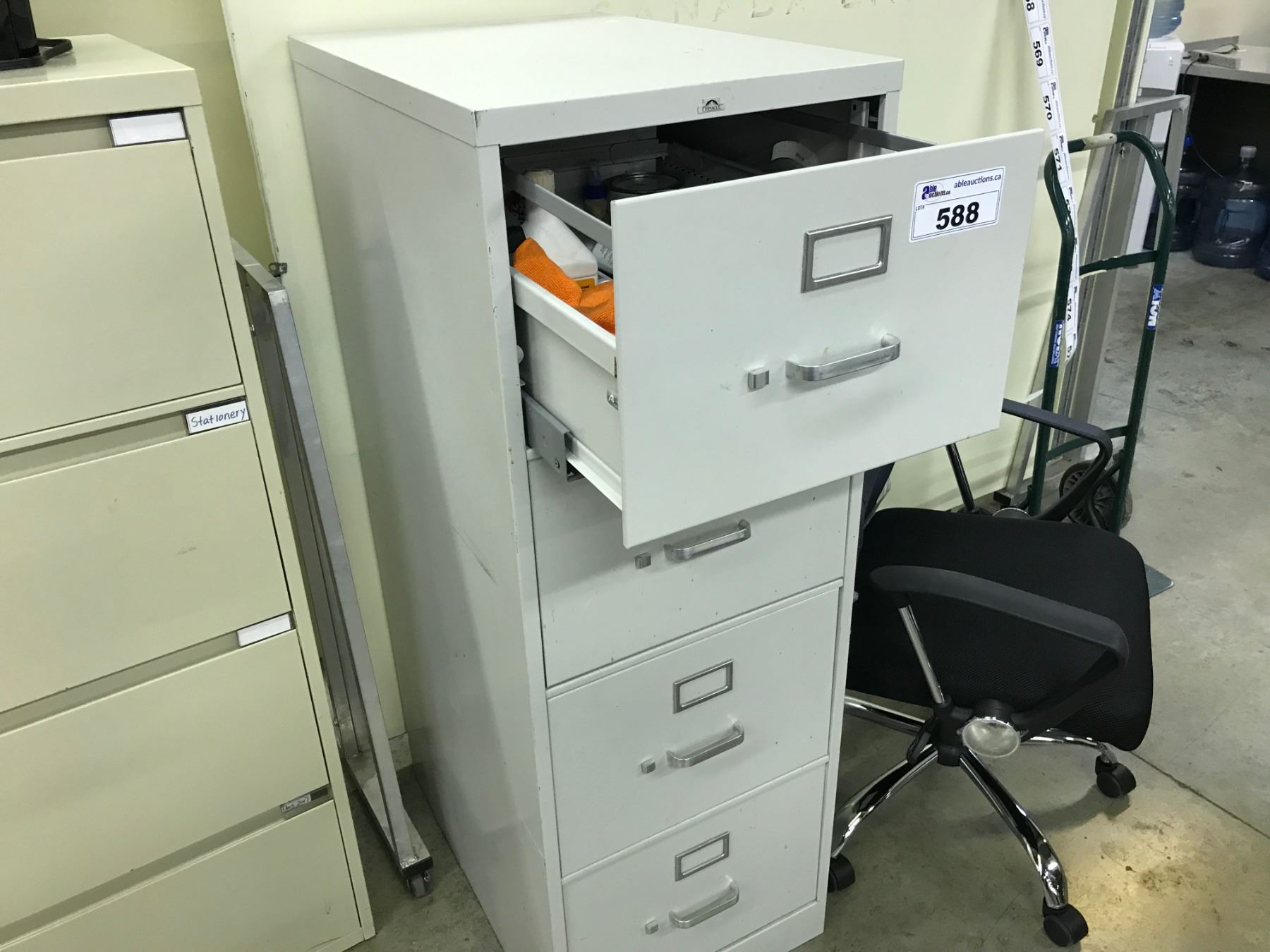 GREY 4 DRAWER VERTICAL FILE CABINET AND MISC. SUPPLIES