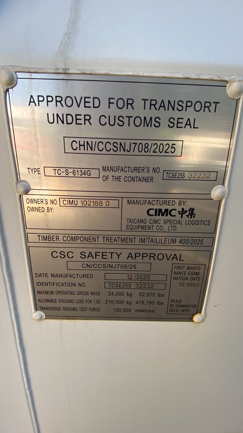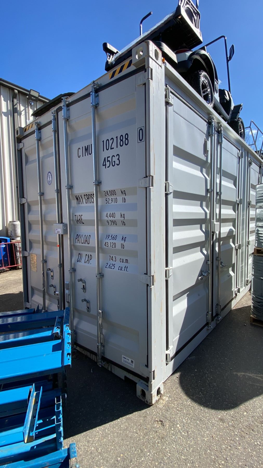 GREY 40' 52,910 LB MAX CAPACITY INDUSTRIAL TRANSPORT CONTAINER WITH 4 DUAL SWING SIDE DOORS DUAL SWING REAR DOOR WITH CAM LOCKS 40'L X 96"W X 114"H APPR CONTAINER # CIMU1021880 *REQUIRES HIAB CRANE OR TILT DECK TRAILER TO TRANSPORT* *LAST DAY FOR REMOVAL - SAT APR 18*