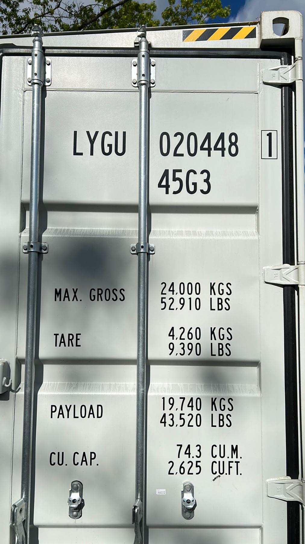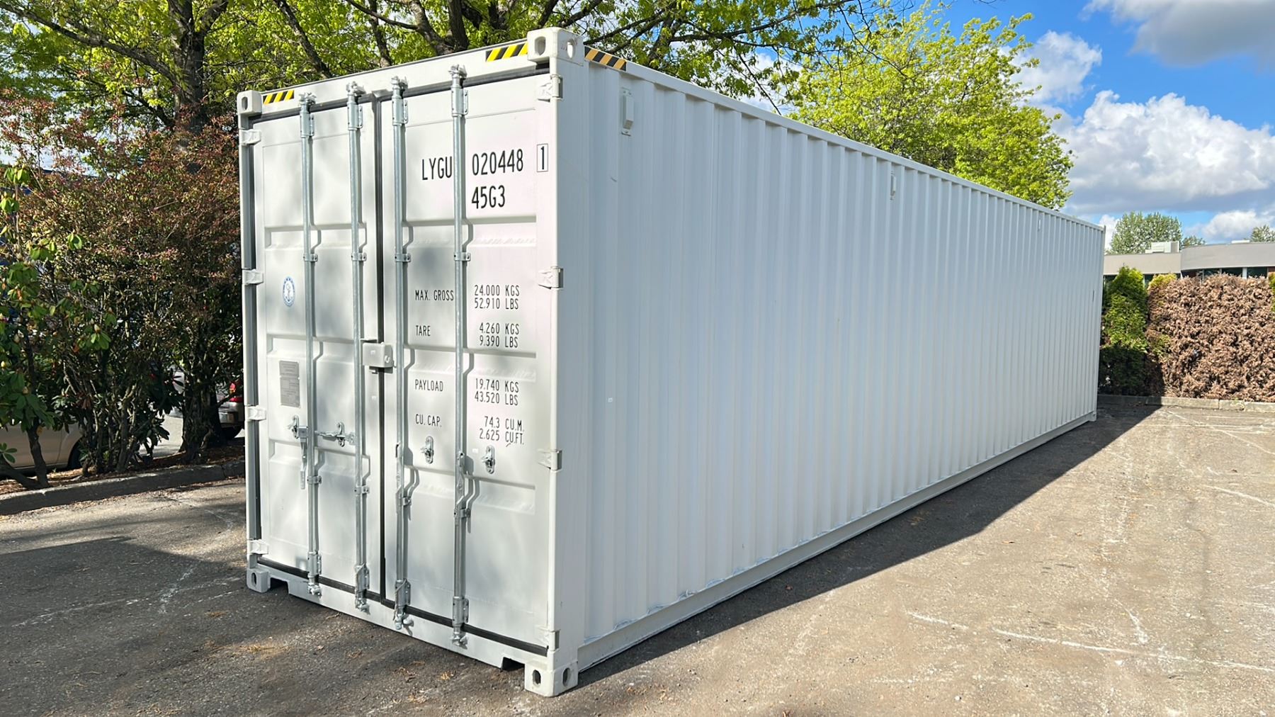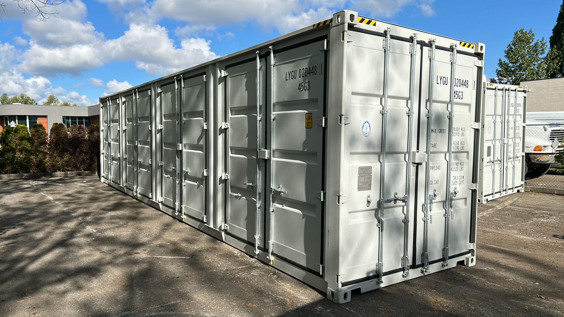 GREY 40' 52,910 MAX CAPACITY INDUSTRIAL TRANSPORT CONTAINER WITH 4 DUAL SWING SIDE DOORS, DUAL SWING REAR DOORS WITH CAM LOCKS, 40'L X 96"W X 114"H - LYGU 020448 1 *REQUIRES HIAB CRANE OR TILT DECK TRAILER TO TRANSPORT/LAST DAY FOR REMOVAL