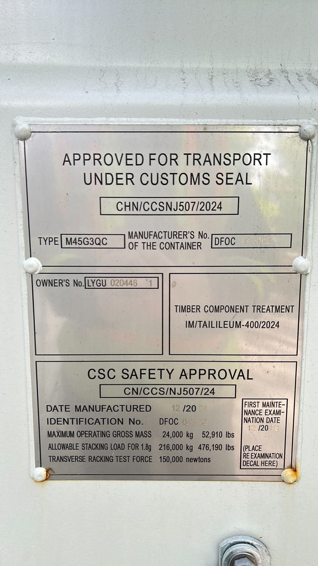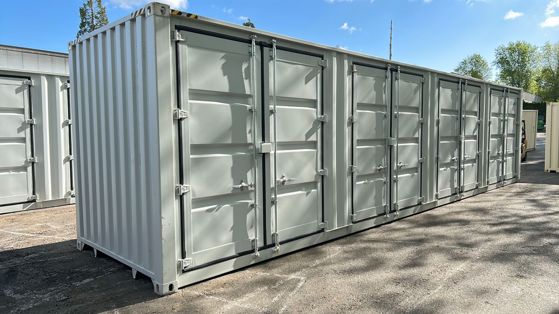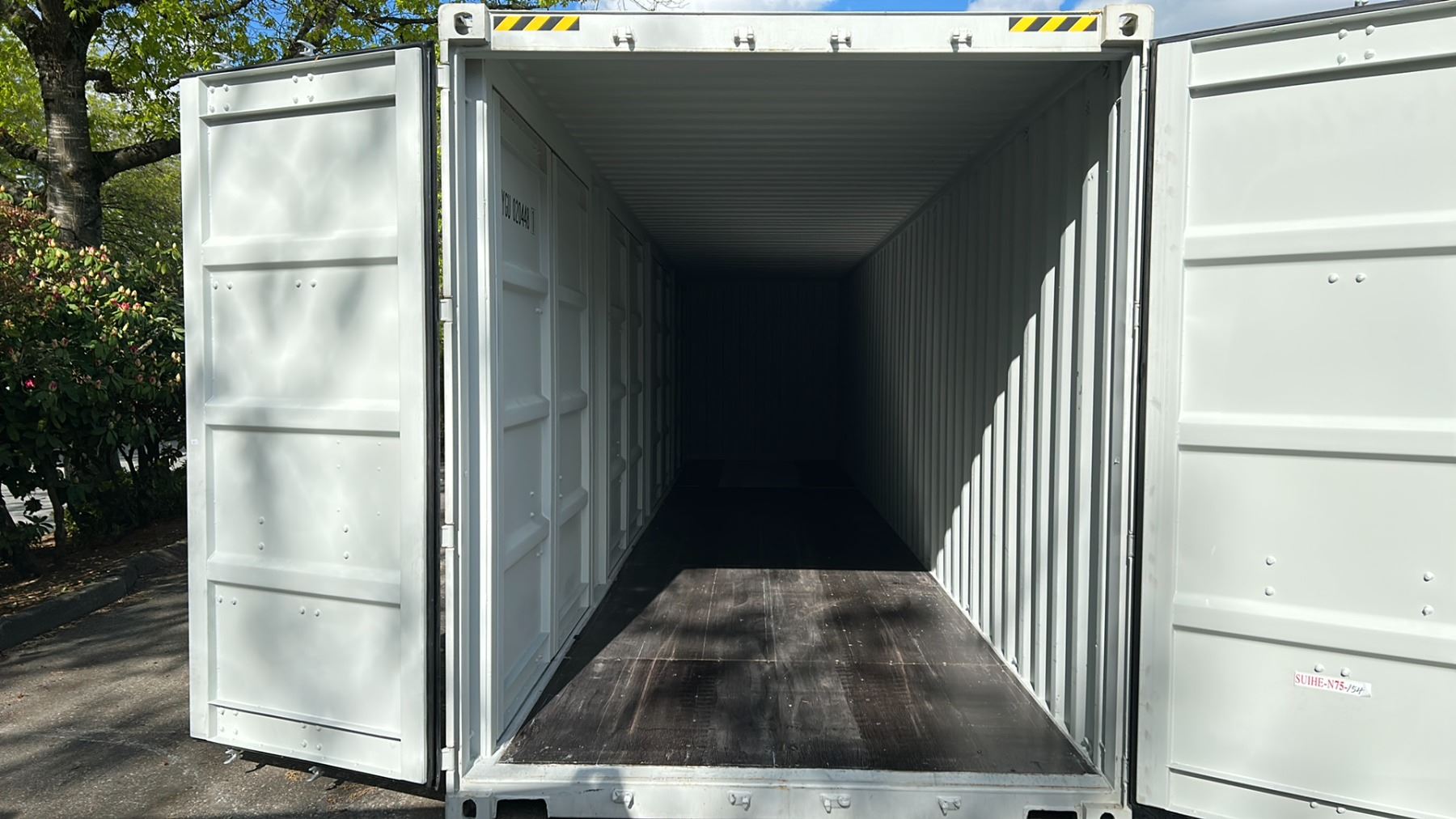 GREY 40' 52,910 MAX CAPACITY INDUSTRIAL TRANSPORT CONTAINER WITH 4 DUAL SWING SIDE DOORS, DUAL SWING REAR DOORS WITH CAM LOCKS, 40'L X 96"W X 114"H - LYGU 020448 1 *REQUIRES HIAB CRANE OR TILT DECK TRAILER TO TRANSPORT/LAST DAY FOR REMOVAL