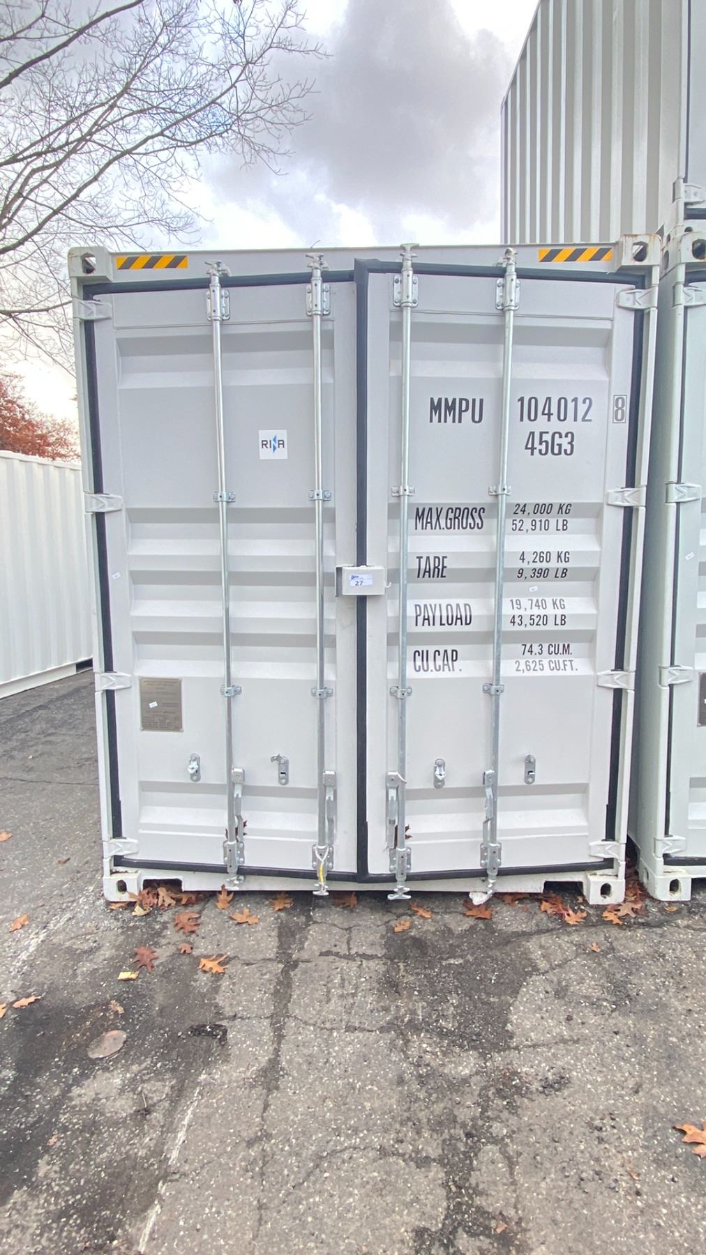 GREY 40FT 52,910 MAX CAPACITY INDUSTRIAL TRANSPORT CONTAINER, 4 DUAL SWING SIDE DOORS / DUAL SWING REAR DOORS WITH CAM LOCKS 40'L X 96"W X 114"H - MMPU 1040128 *REQUIRES HIAB CRANE OR TILT DECK TRAILER TO TRANSPORT, LAST DAY REMOVAL, SUNDAY ONLY*