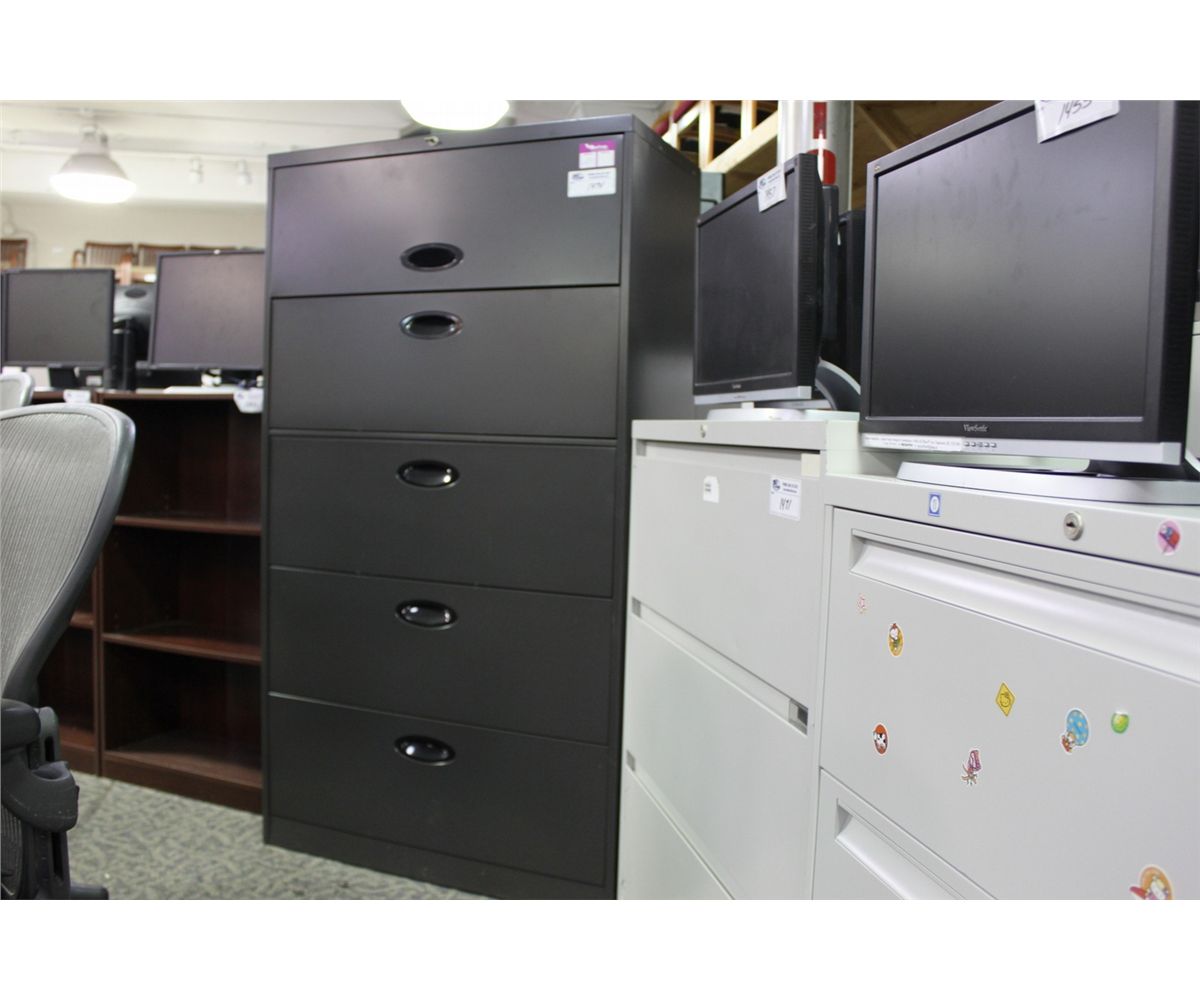 GREY 5 DRAWER LATERAL FILE CABINETS