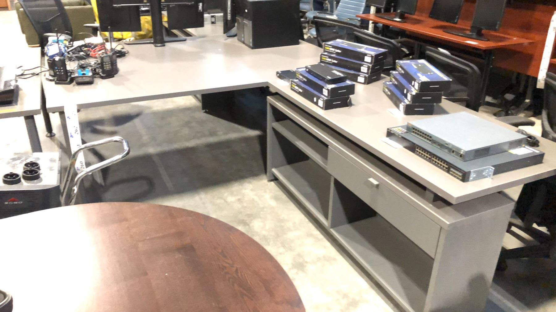 GREY 6.5' X 7.5' L SHAPE COMPUTER DESK - RIGHT HAND