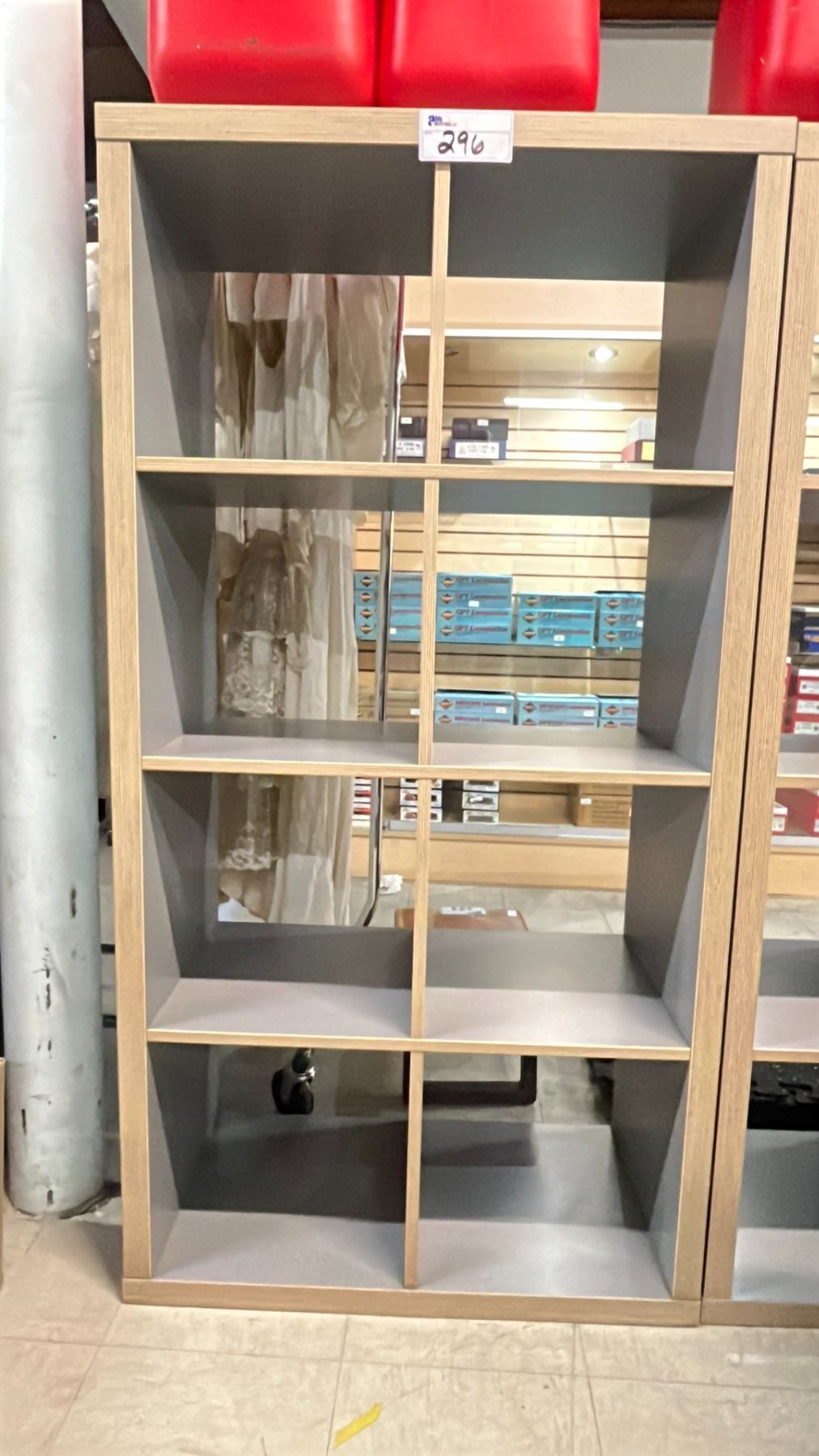 GREY 8 SECTION STORAGE SHELF - APPROX. 30"W X 15.5"D X 58"H