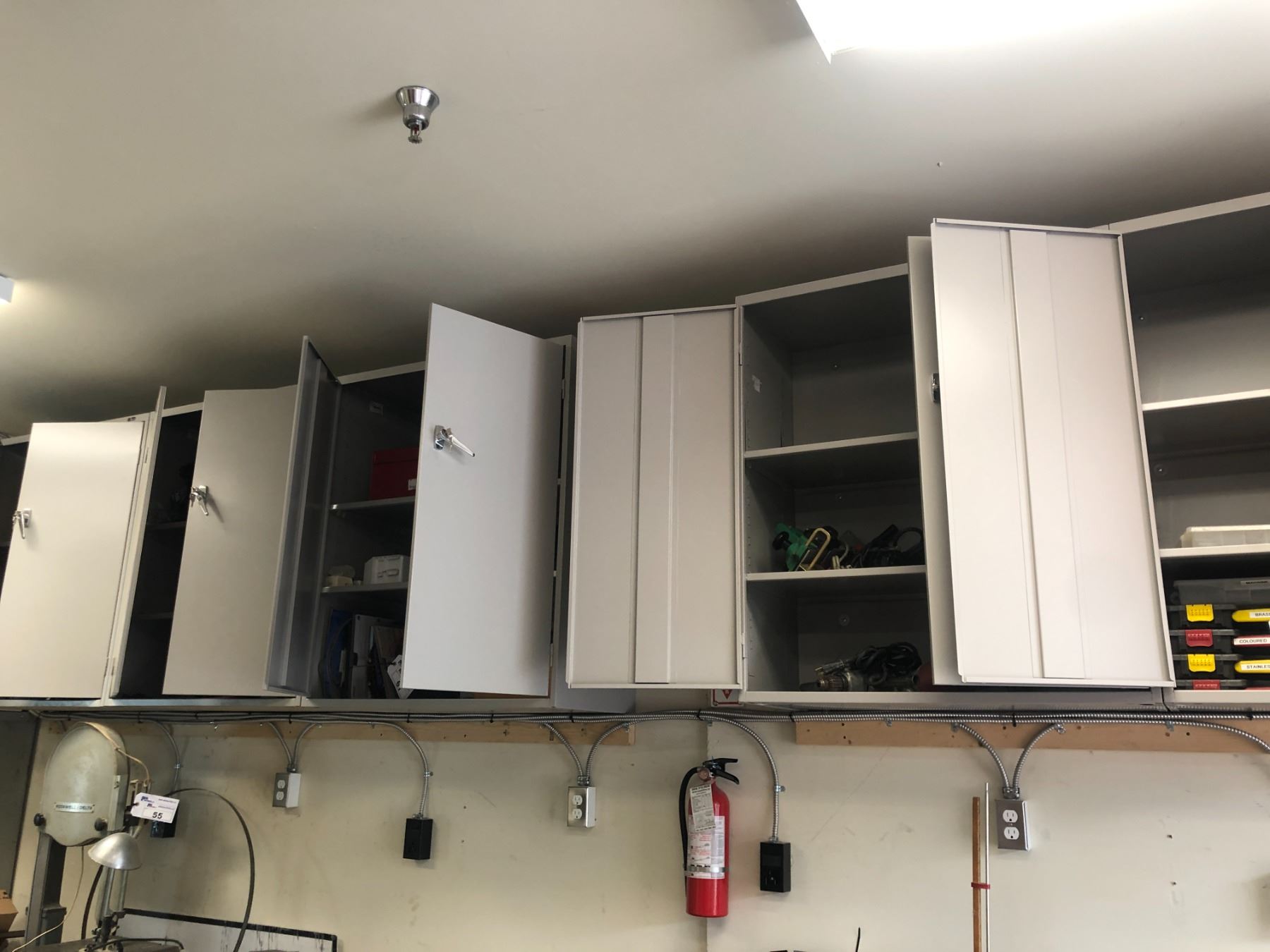 GREY ADJUSTABLE SHELF WALL MOUNT CABINET, CONTENTS NOT INCLUDED, *MUST BE REMOVED AFTERNOON OF DAY 2 REMOVAL, FIRST COME-FIRST SERVED FOR CHOICE OF CABINETS*