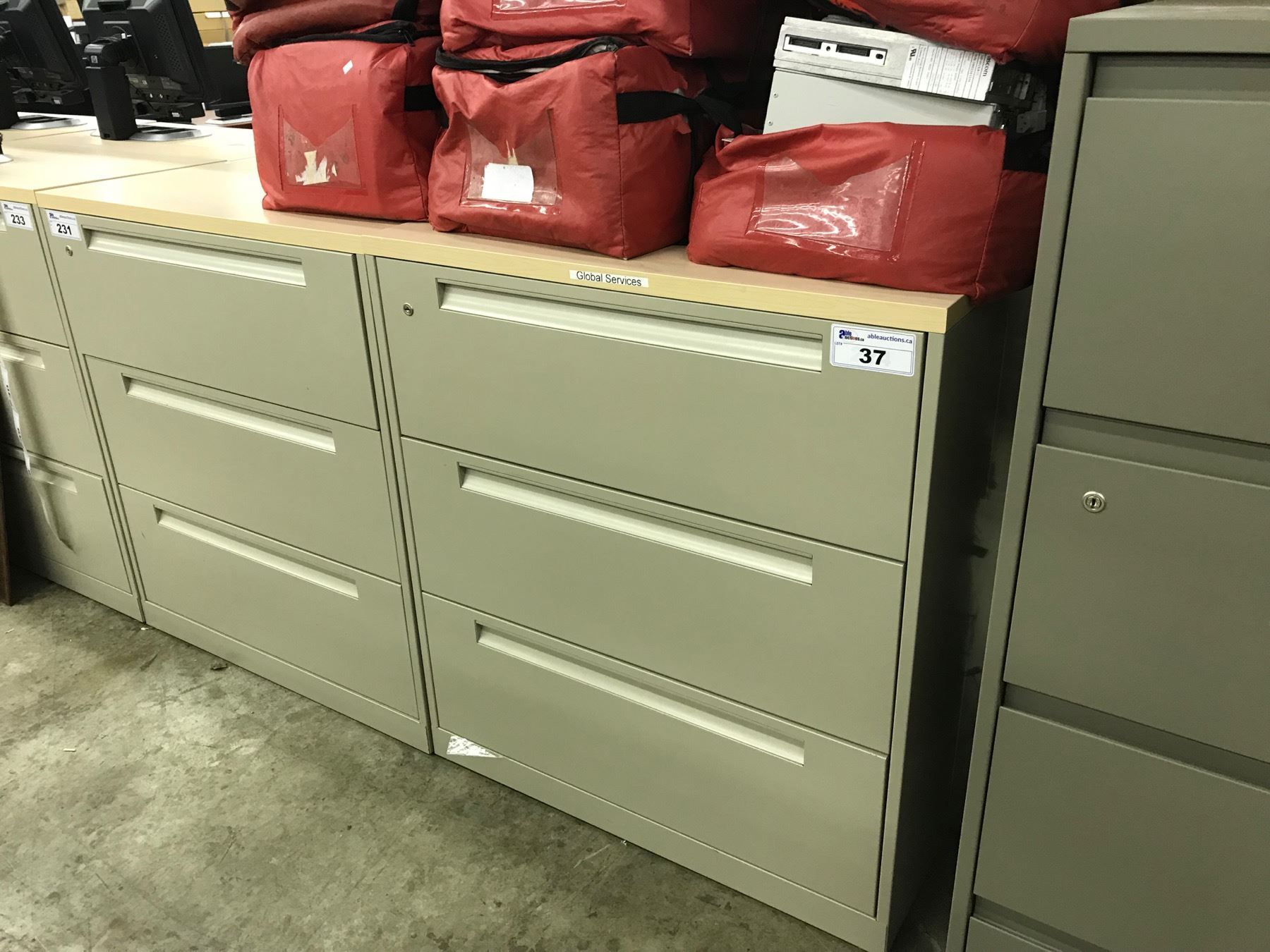GREY AND MAPLE TOP 3 DRAWER LATERAL FILE CABINET