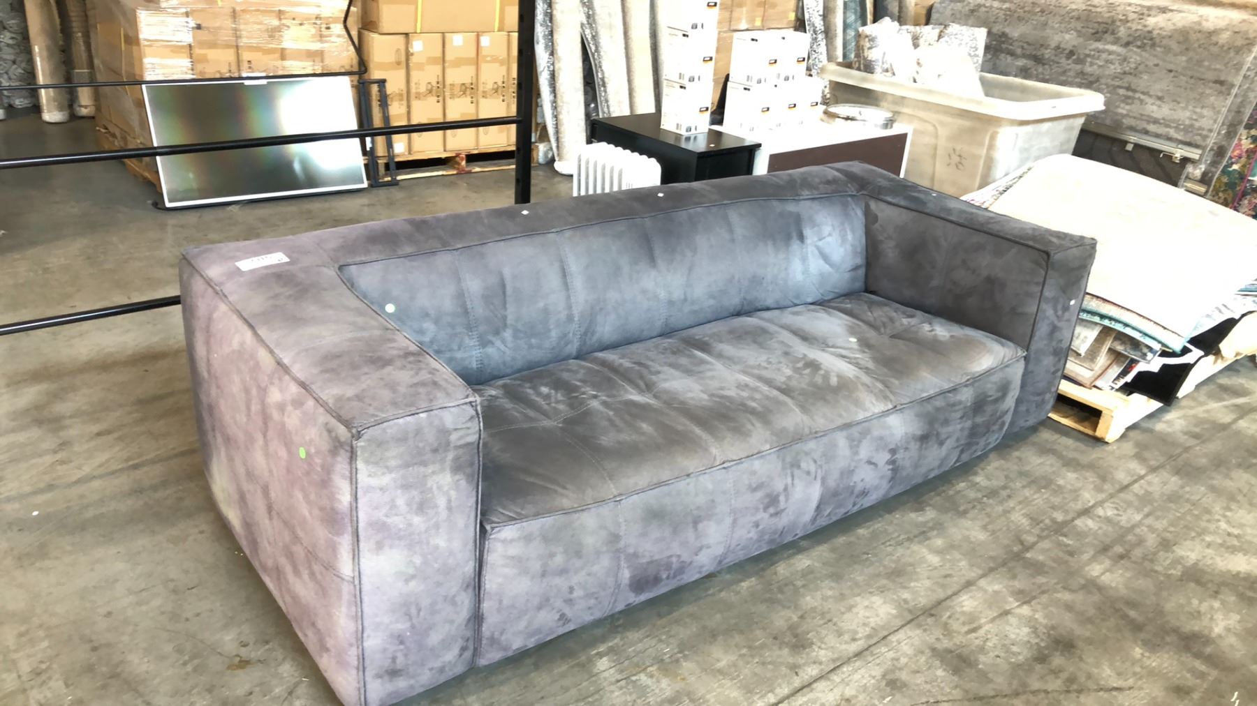GREY ARM-CUSHIONED 3-SEATER COUCH D38" X W96" X H27"