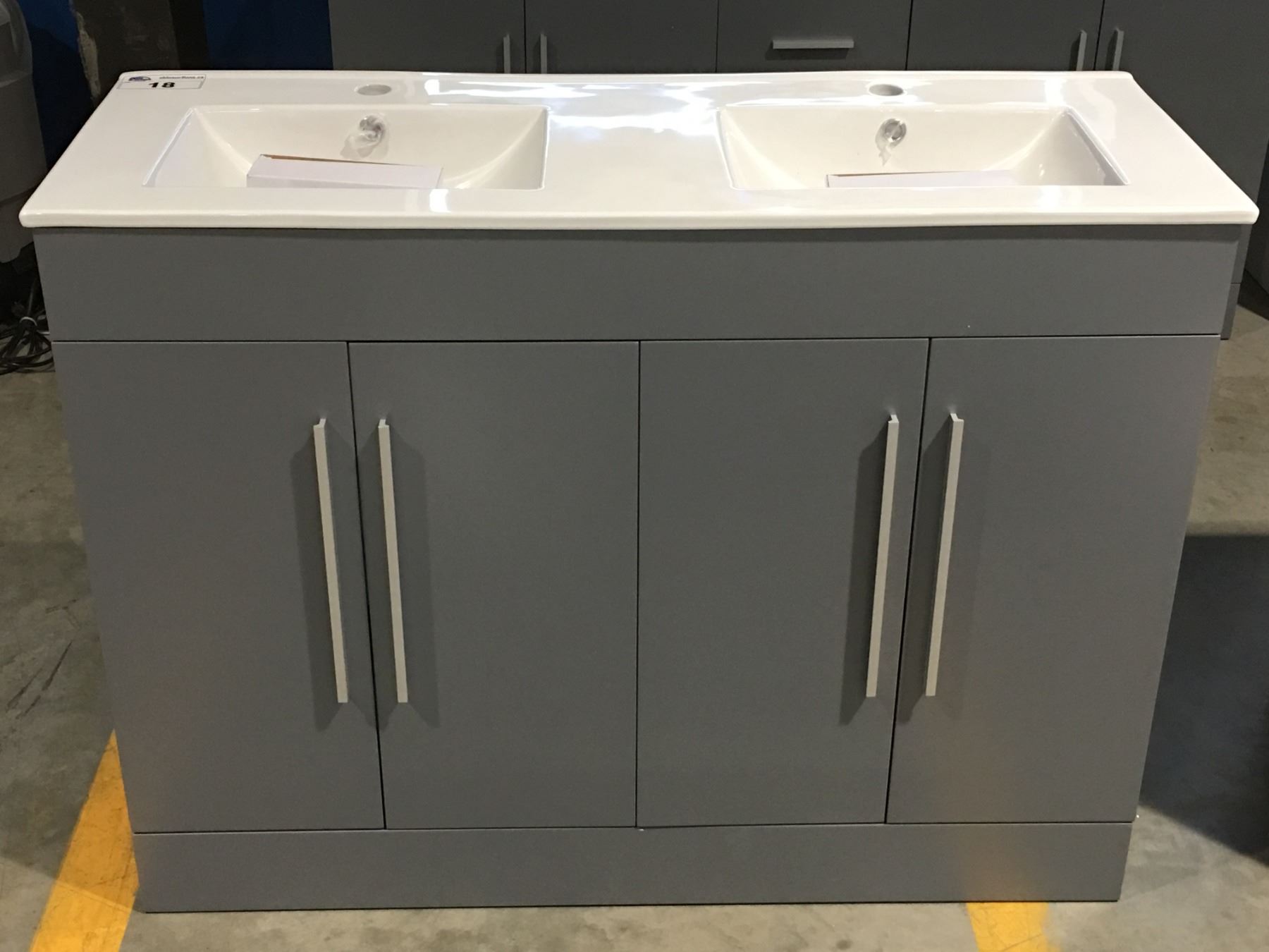 GREY BATHROOM VANITY - CERAMIC COUNTER WITH UNDER MOUNT DOUBLE SINKS - 48"W X 18"D X 35.5"H