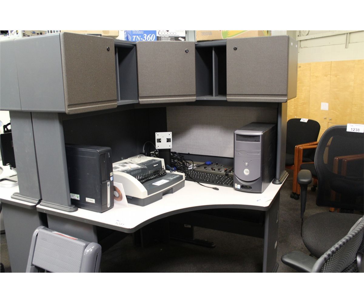GREY CORNER COMPUTER DESK W/ HUTCH